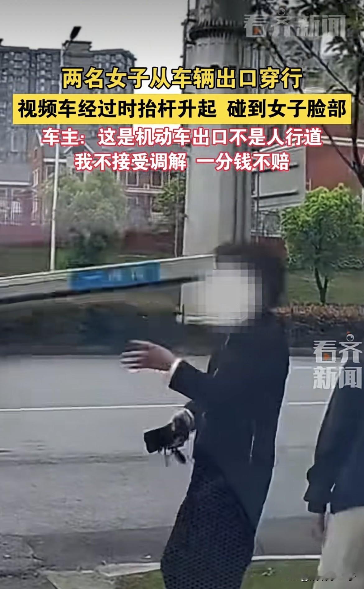 两女子好好的路不走,非要从车辆出口处穿过,车子刚好经过这个出口,抬杆升起来后碰到了其中一女子的脸部,这名女子最后要求车主和物业赔偿她的精神损失费、种假牙费用和医疗费用(光四颗假牙就2万元),物业80%,车主20%。