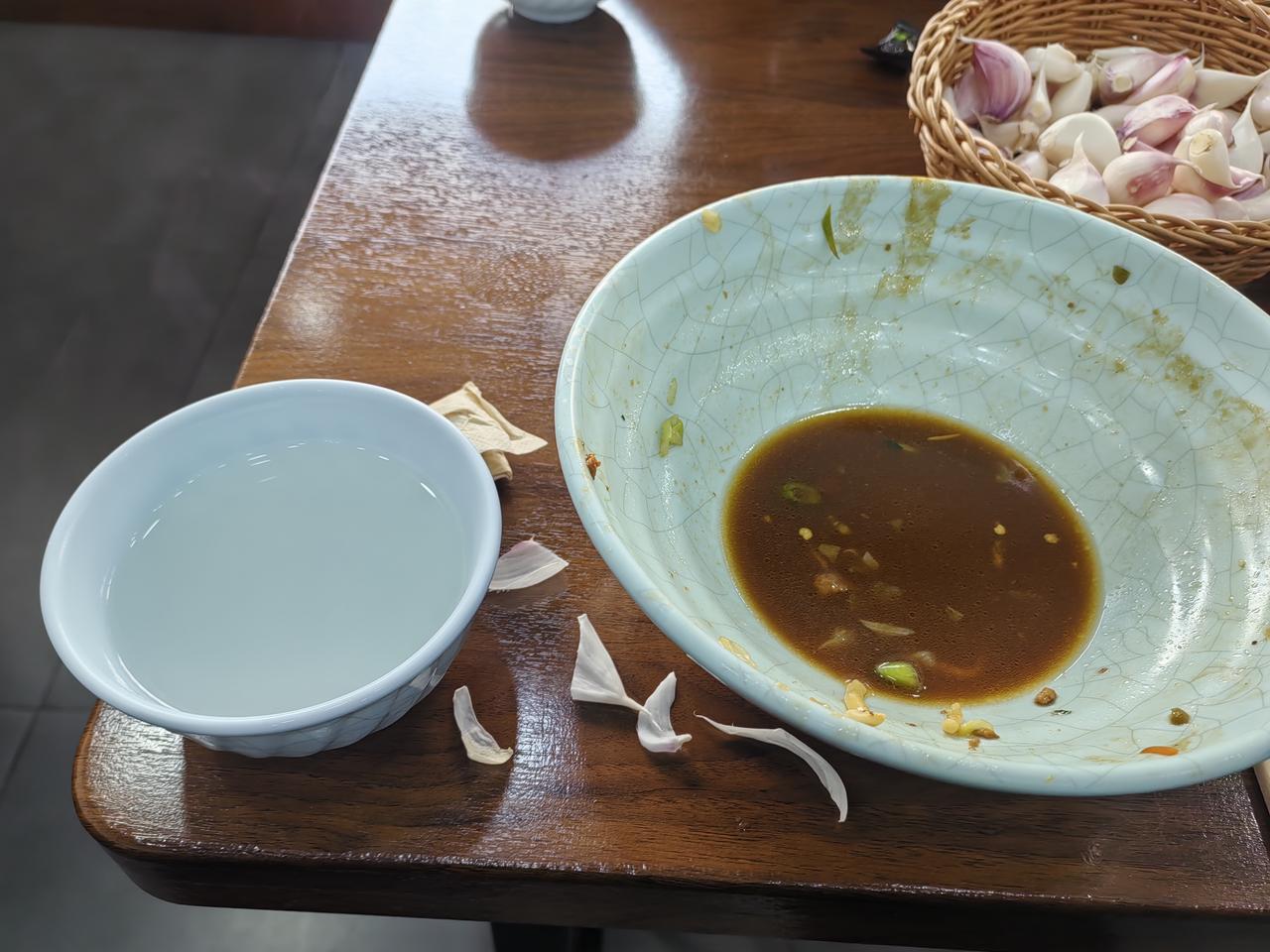 吃饱了,喝面汤。喝完面汤骑车溜达周边,至少溜达十来 条街道,找传统天津面馆,吃两月天津市三鲜打卤面。这家西湖道的面条贵,25元,别的面馆16元一碗,都差不多。