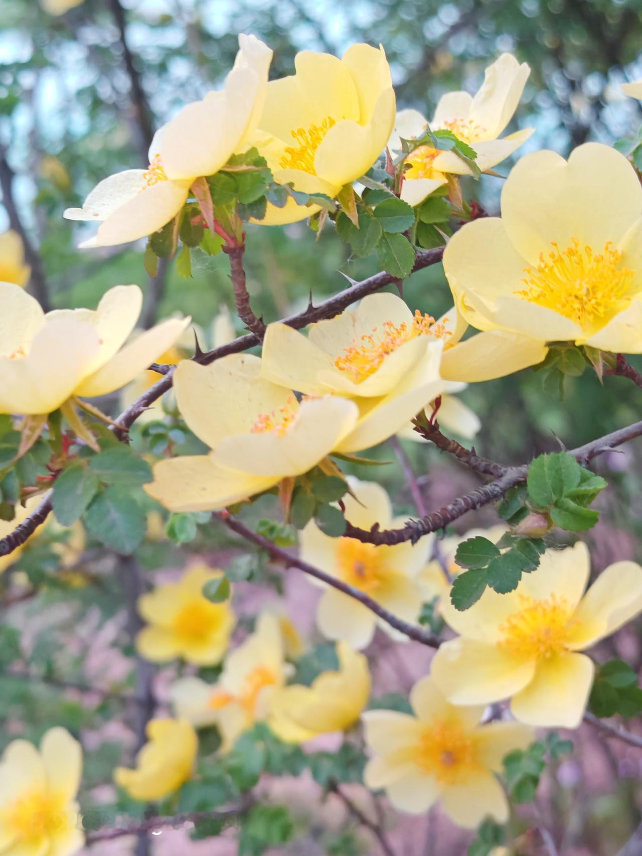 我还听说刺梅花生命力超顽强,不管环境多恶劣,都能努力绽放。在潞阳桥西路,它们迎着风,在路边肆意生长,给单调的街道增添了一抹亮色。每次经过,心情都会跟着变好,感觉生活也多了几分美好。