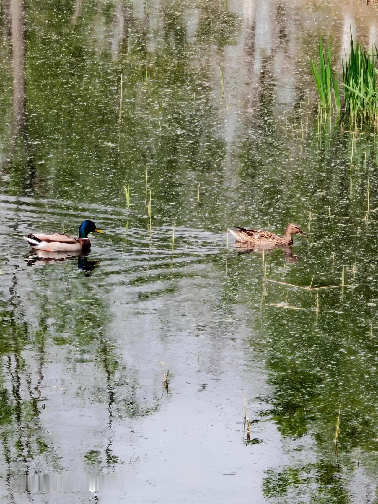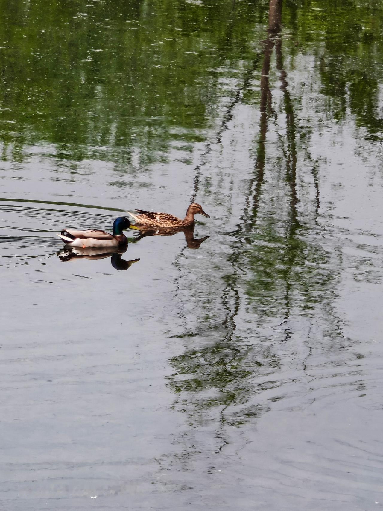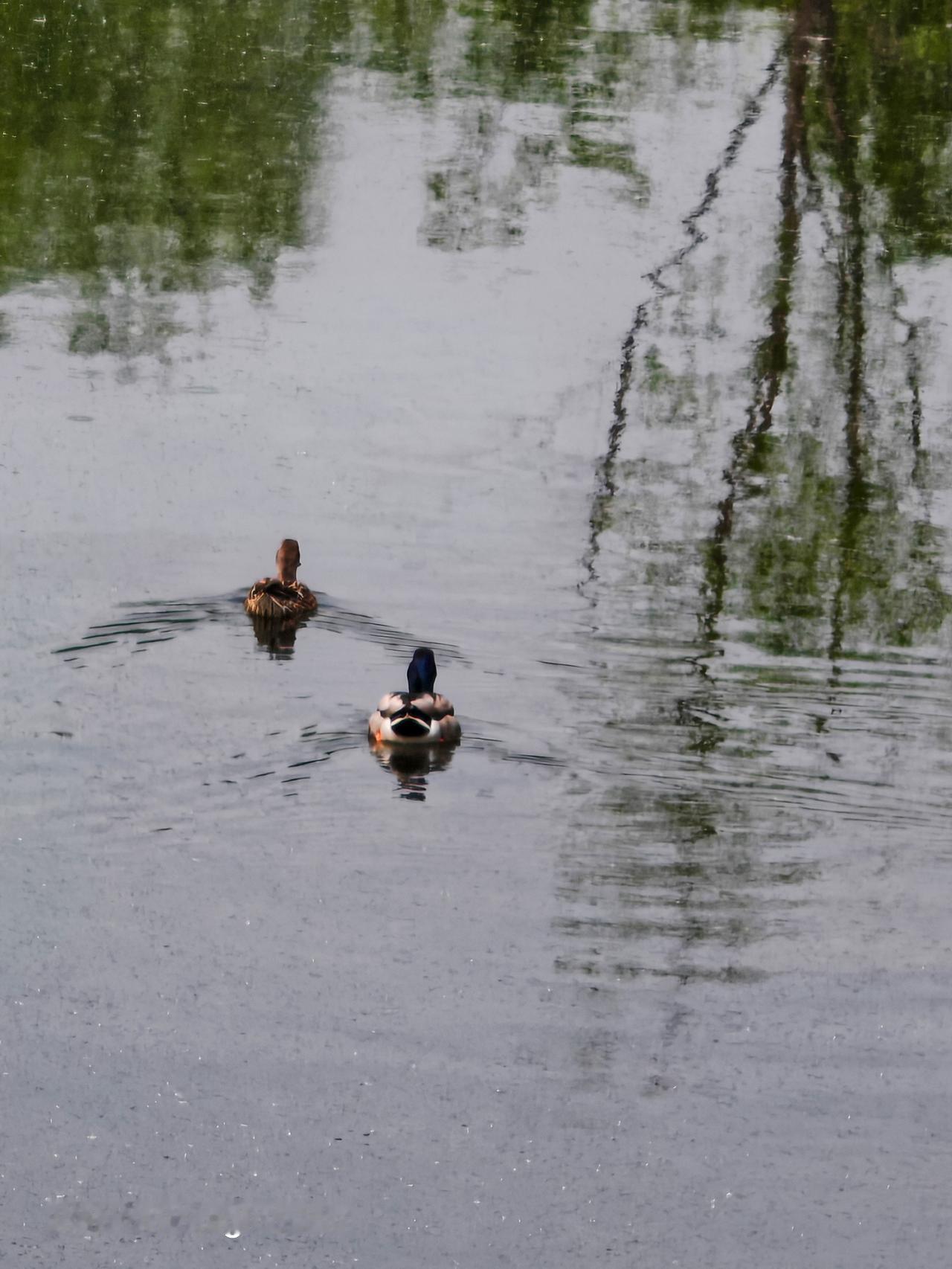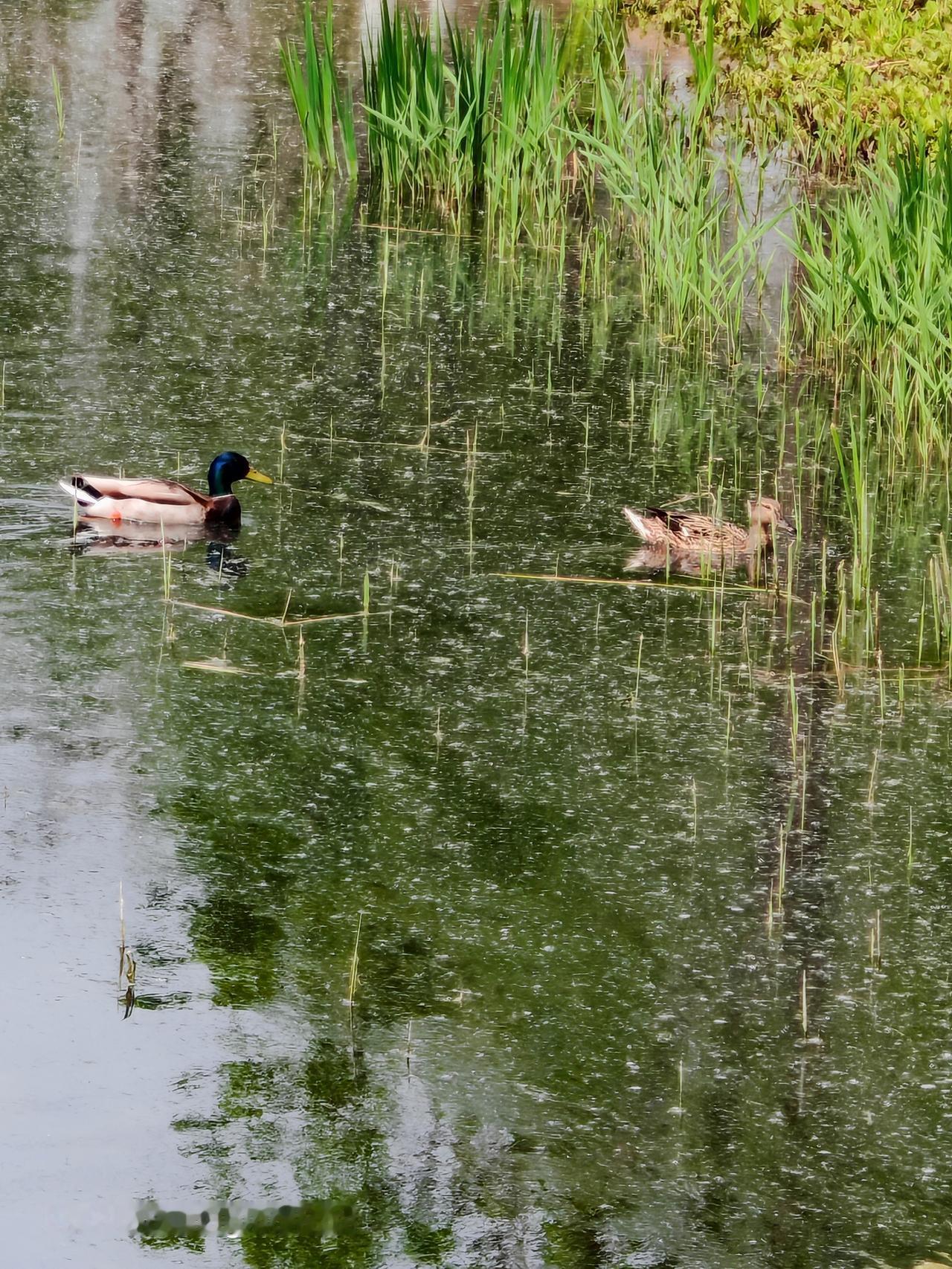 最近随手拍了张通州运河故道的照片,画面里一群鸭子在水里悠哉游着,太惬意了。