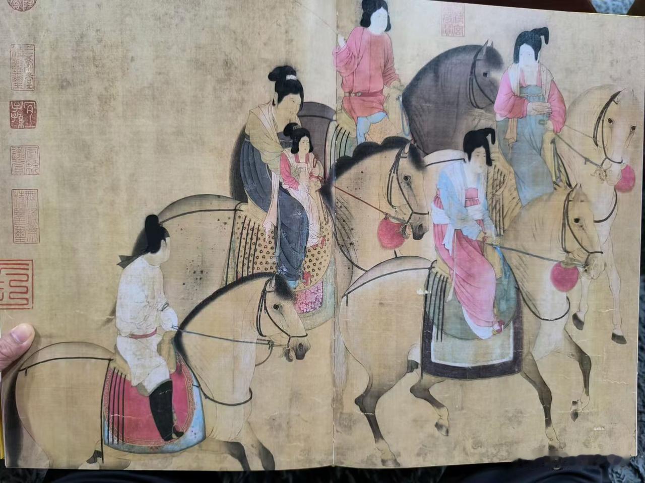 唐代画家张萱画作皆失传,但有北宋皇帝宋徽宗临摹张萱的《虢国夫人游春图》和《捣练图