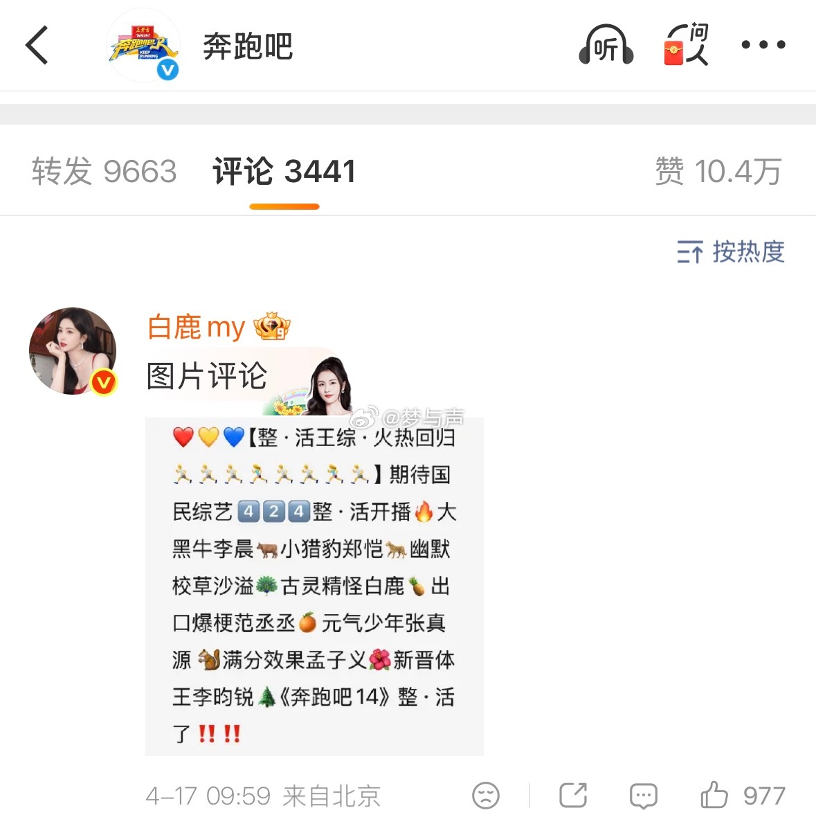 白鹿帮奔跑吧所有常驻控评!第一次见这么会整活的,白鹿抢了白鹿粉丝前排控评,并帮奔