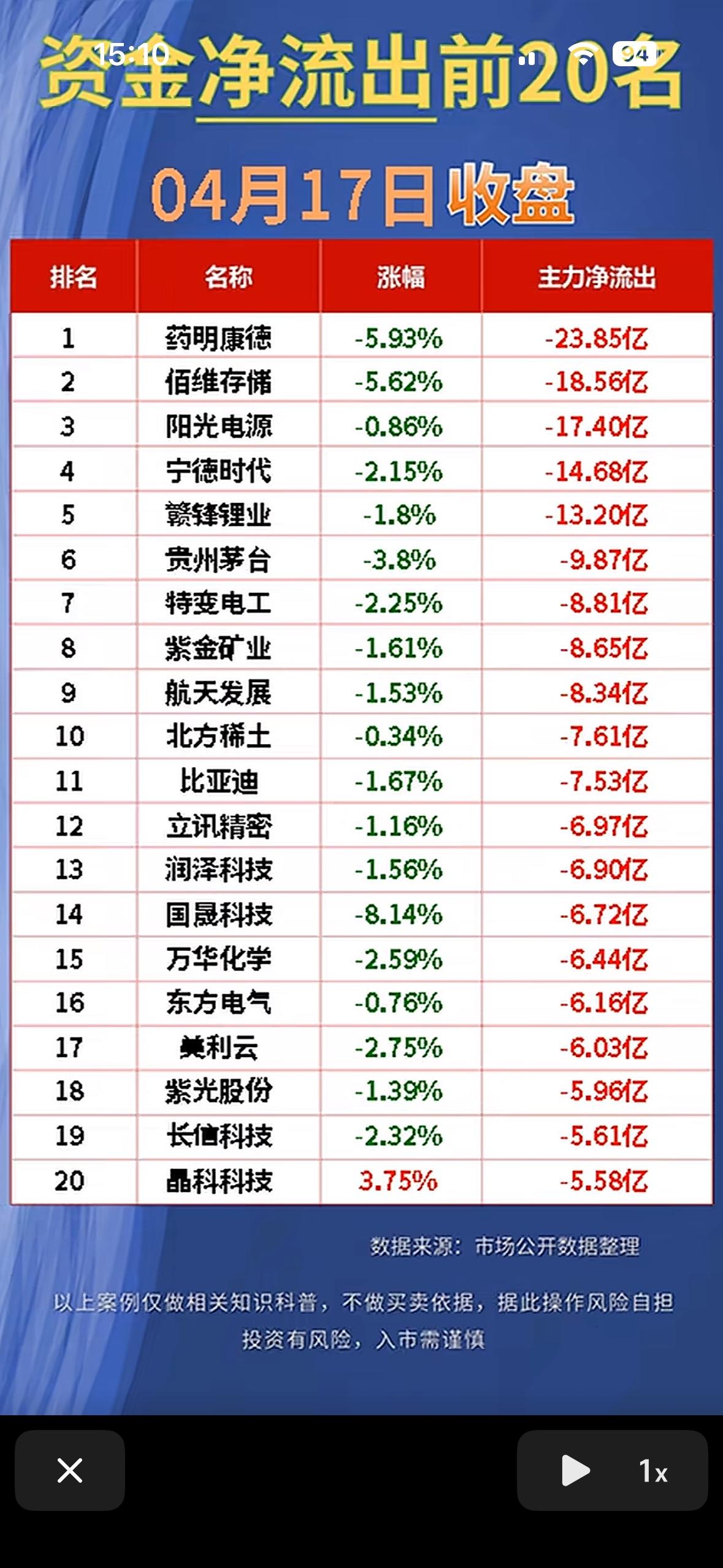 📈4月17日净流入与流出前20名股票揭晓!📈