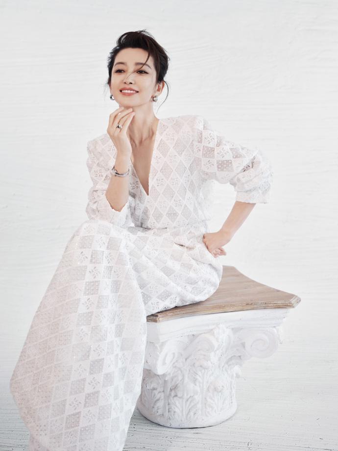 李冰冰留着超美的秀发,还搭配了银色的耳坠和手环,看上去很有国际大牌明星风采。