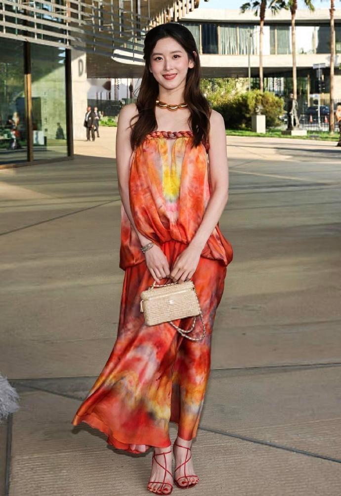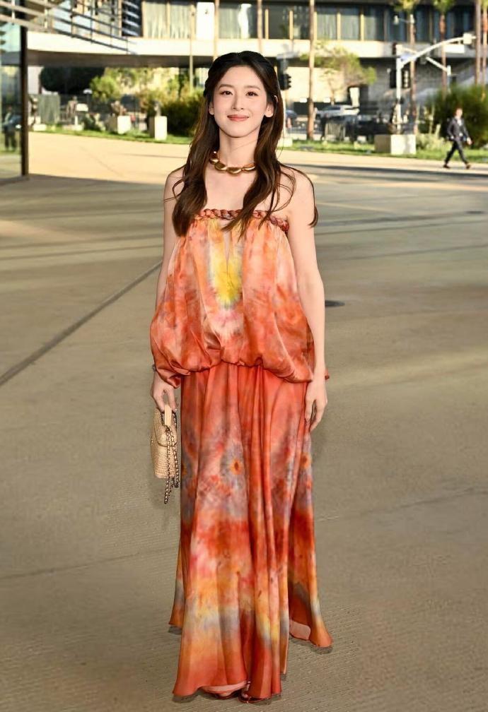 章泽天的身段是极为苗条的,她穿上这件宽松的裙子之后凸显出了潇洒随性的魅力。