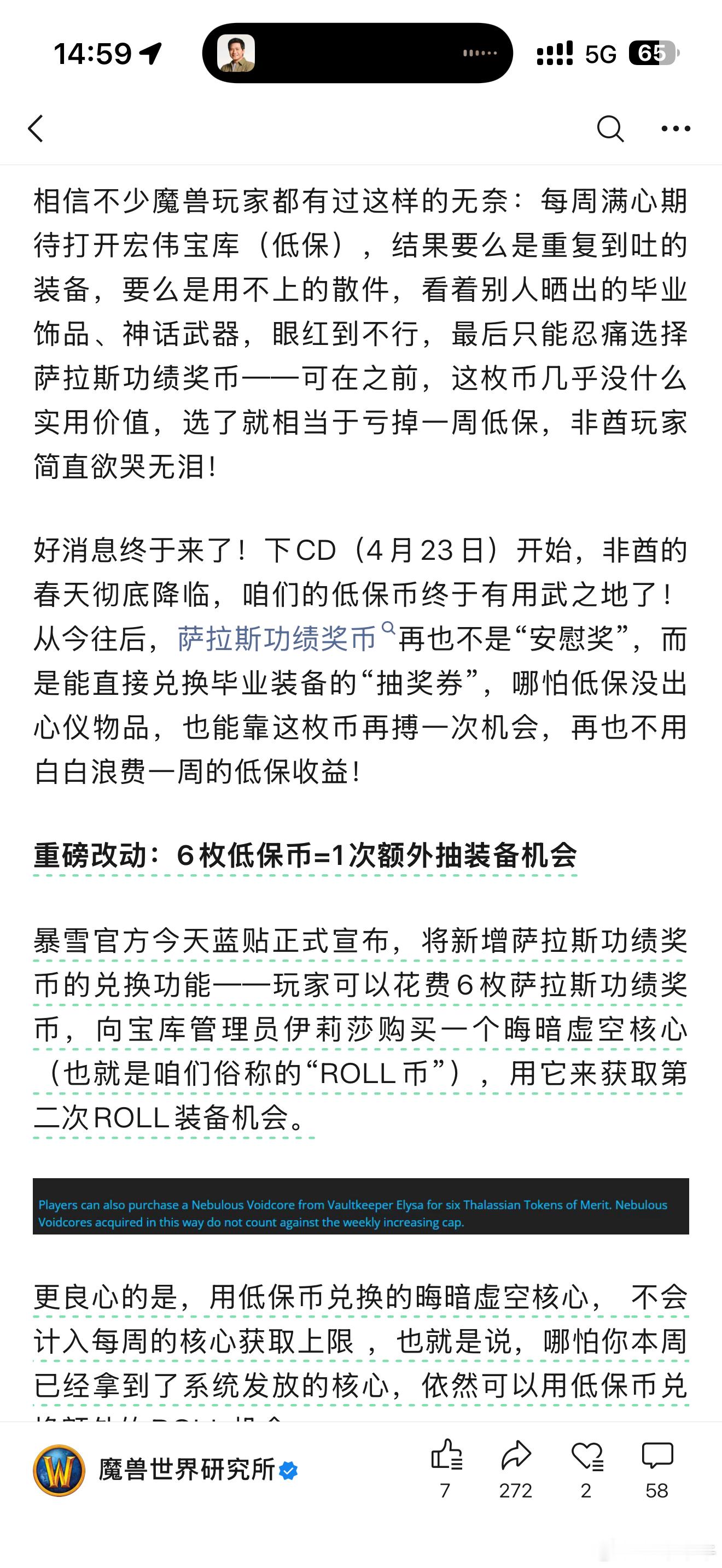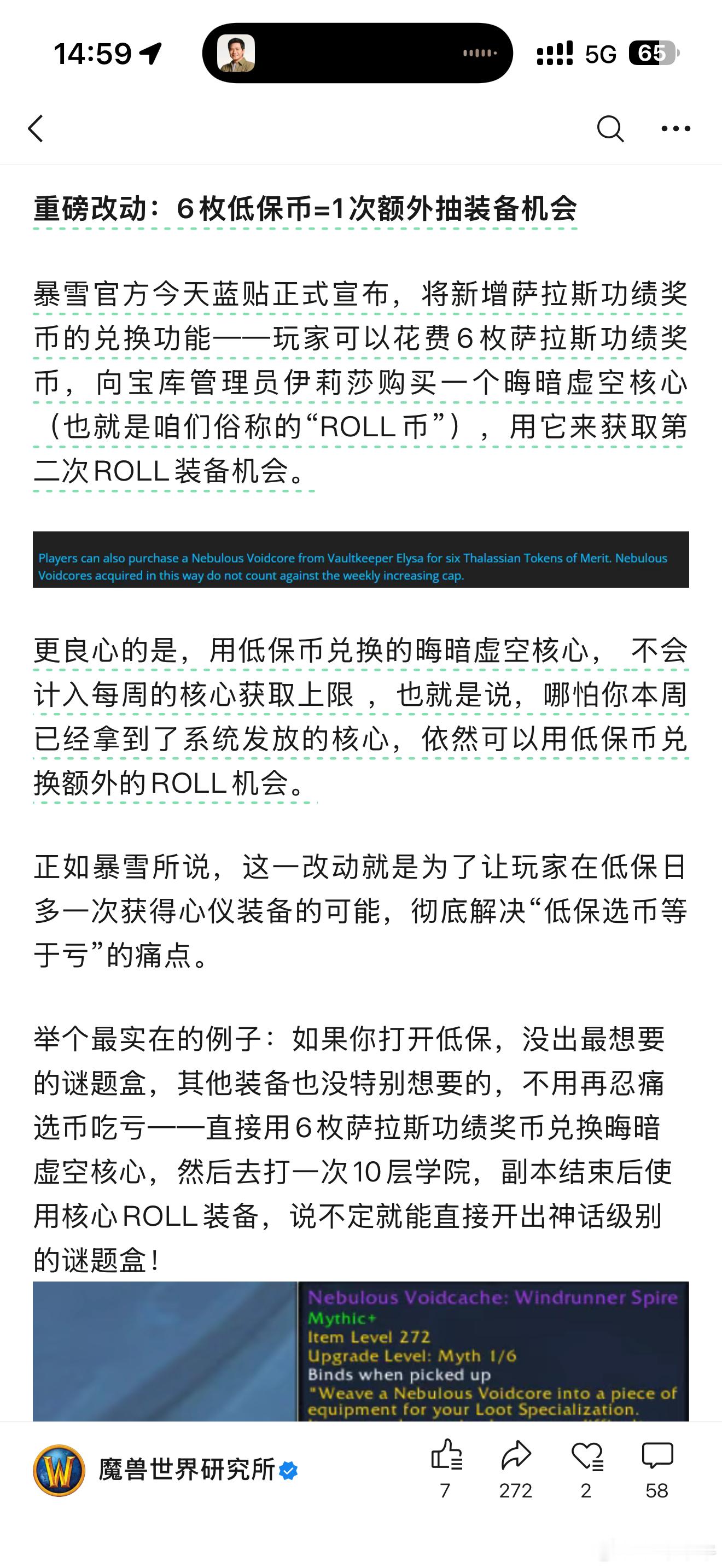 超级利好!下周开始非酋的低保有救了!拿币可抽毕业装备!萨拉斯功绩奖币可兑换"晦暗虚空核心"(6币=1次),用于额外抽取毕业装备且不计入周上限。玩家需先完成"建造虚空熔炉"任务(收集6个初级虚空核心),之后在团本(消耗2核心)、大秘境等玩法中使用核心ROLL装备,掉落池将定向清空避免重复。核心获取的装备与低保同装等(如10层大秘出神话1/6级),每周核心上限增加2个。此外,晋升虚空核心可强化毕业装备至298装等。该改动彻底解决"低保选币亏收益"痛点,让非酋玩家多一次毕业机会。魔兽世界魔兽世界