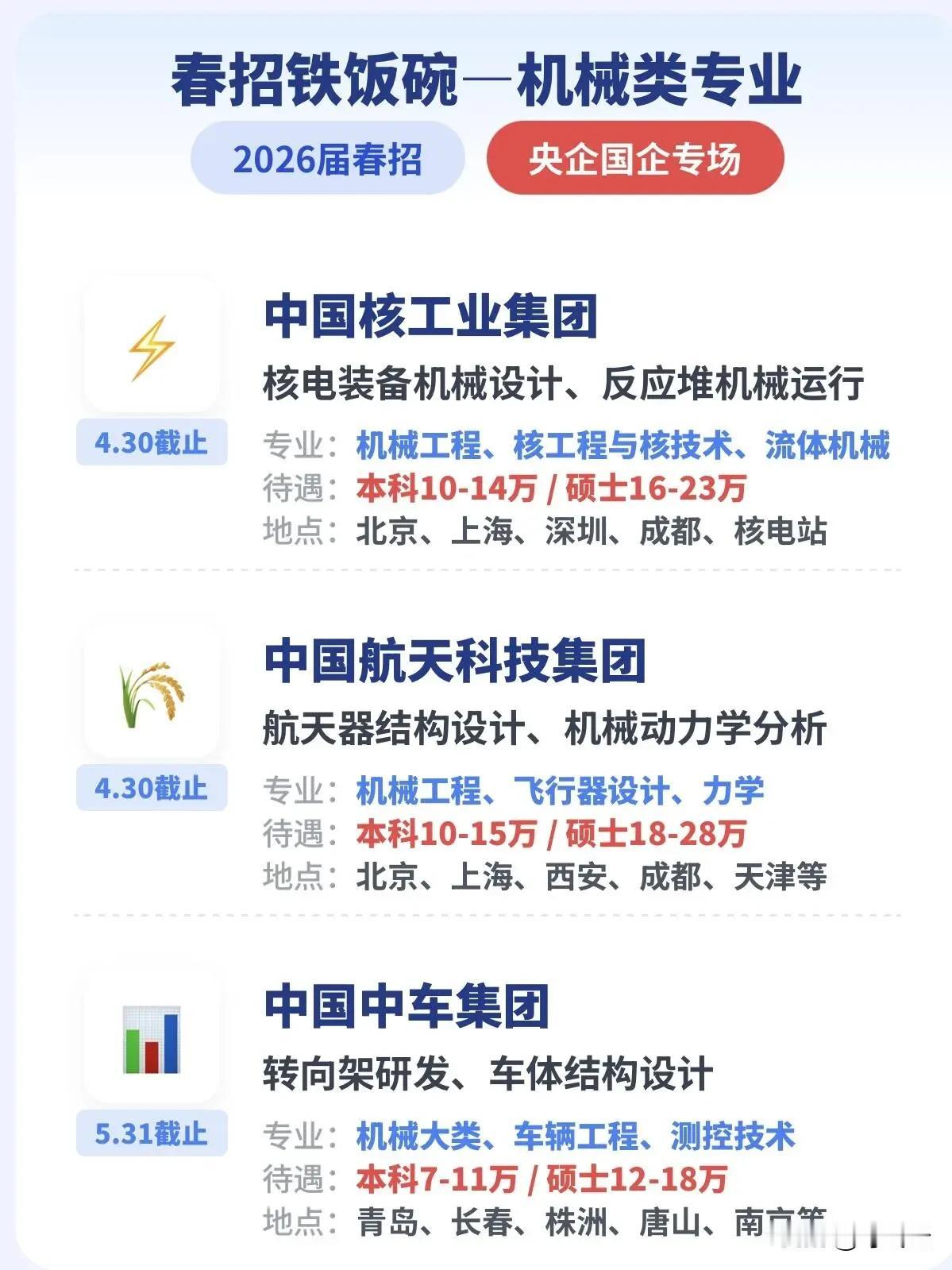 6家4~5月春招铁饭碗岗位合集!机械类专业招聘专场,全是央国企大平台呢!⚙️🚨 机械er春招救命指南!6家央国企铁饭碗闭眼冲!@叮咚云 就业择业指导干货![来看我][来看我][福]