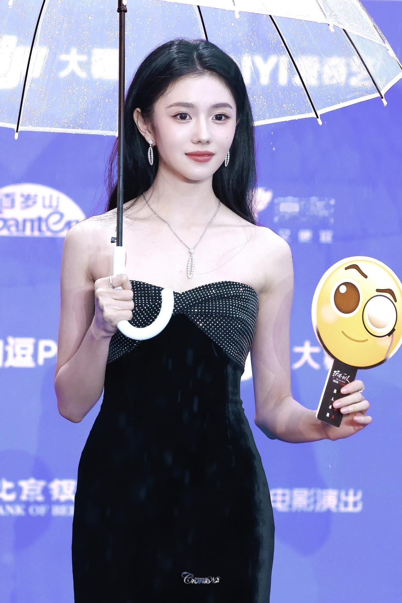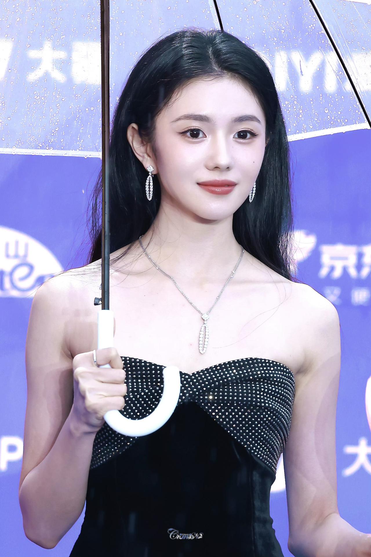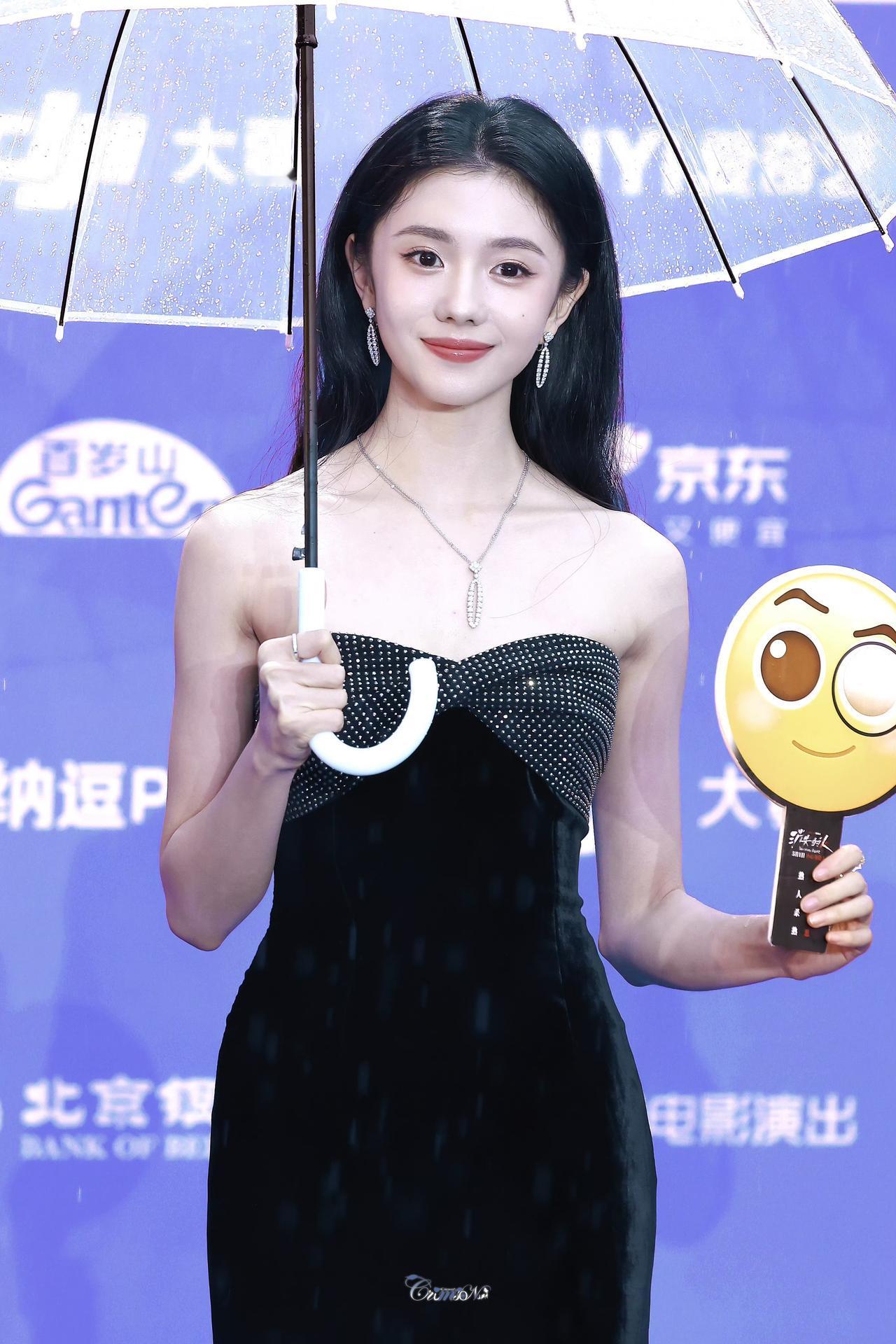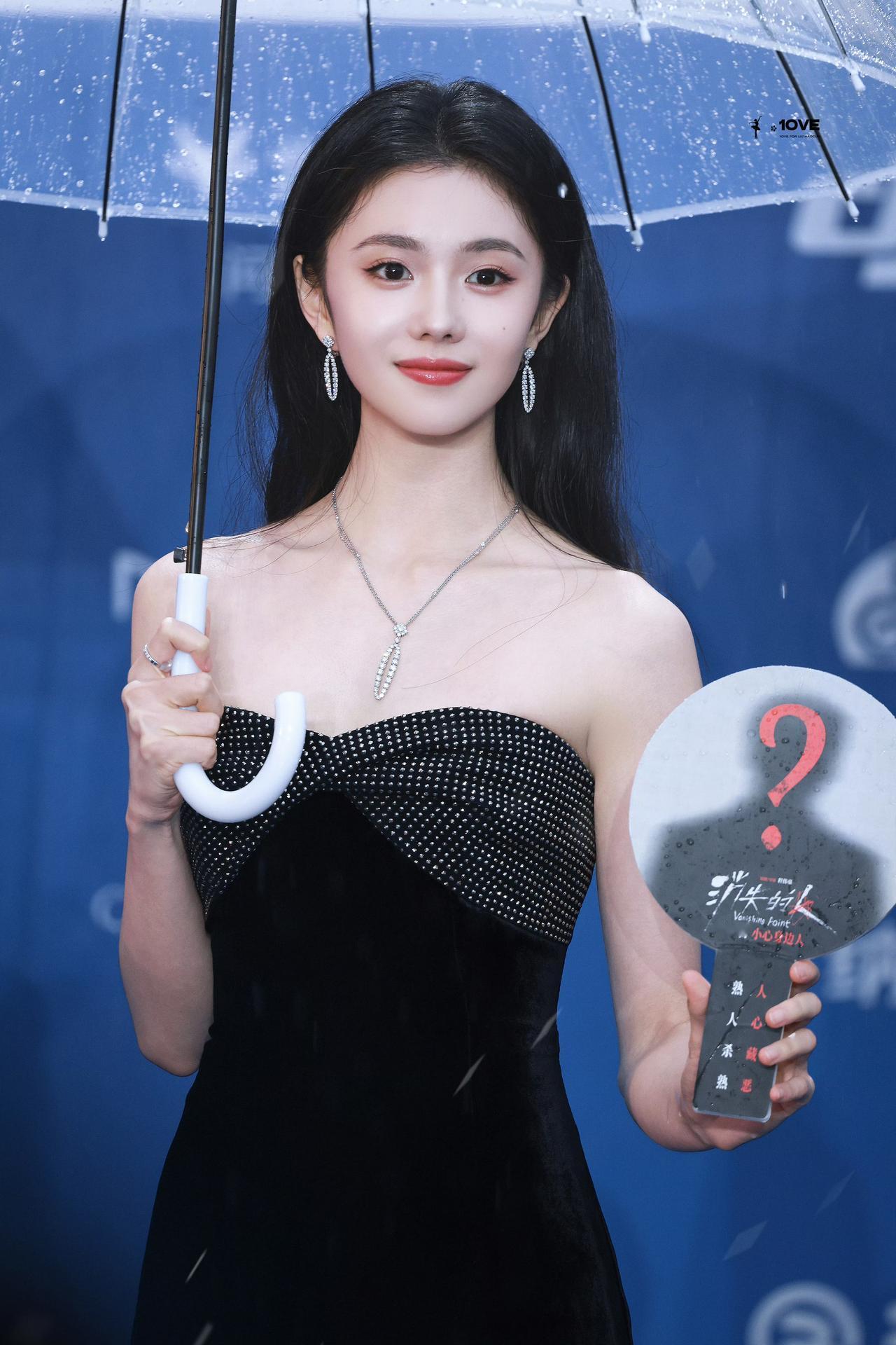 刘浩存撑伞神图有了刘浩存碎钻抹胸黑裙造型刘浩存撑伞神图有了,刘浩存碎钻抹胸黑裙