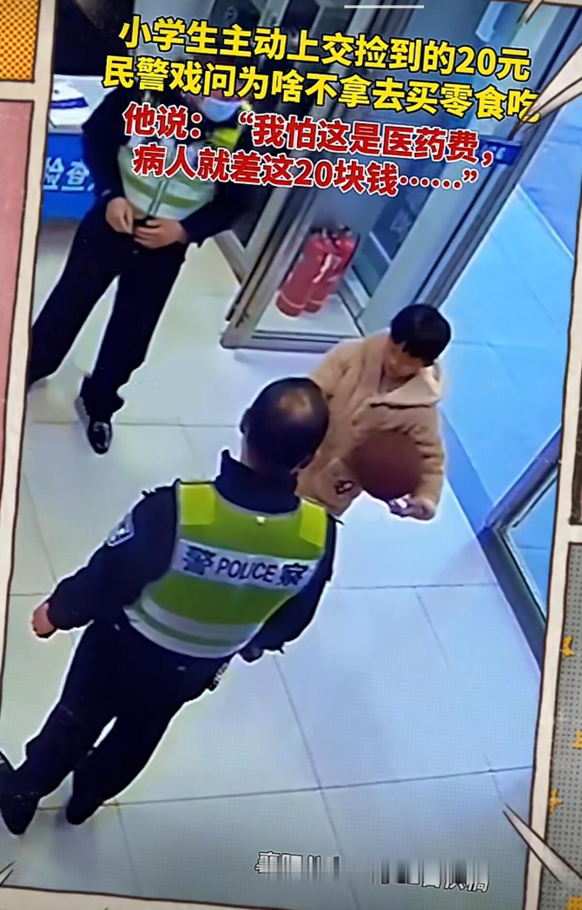 民警叔叔觉得这小孩挺有意思,就逗他:“小朋友,这20块钱你咋不拿去买好吃的呀?”
