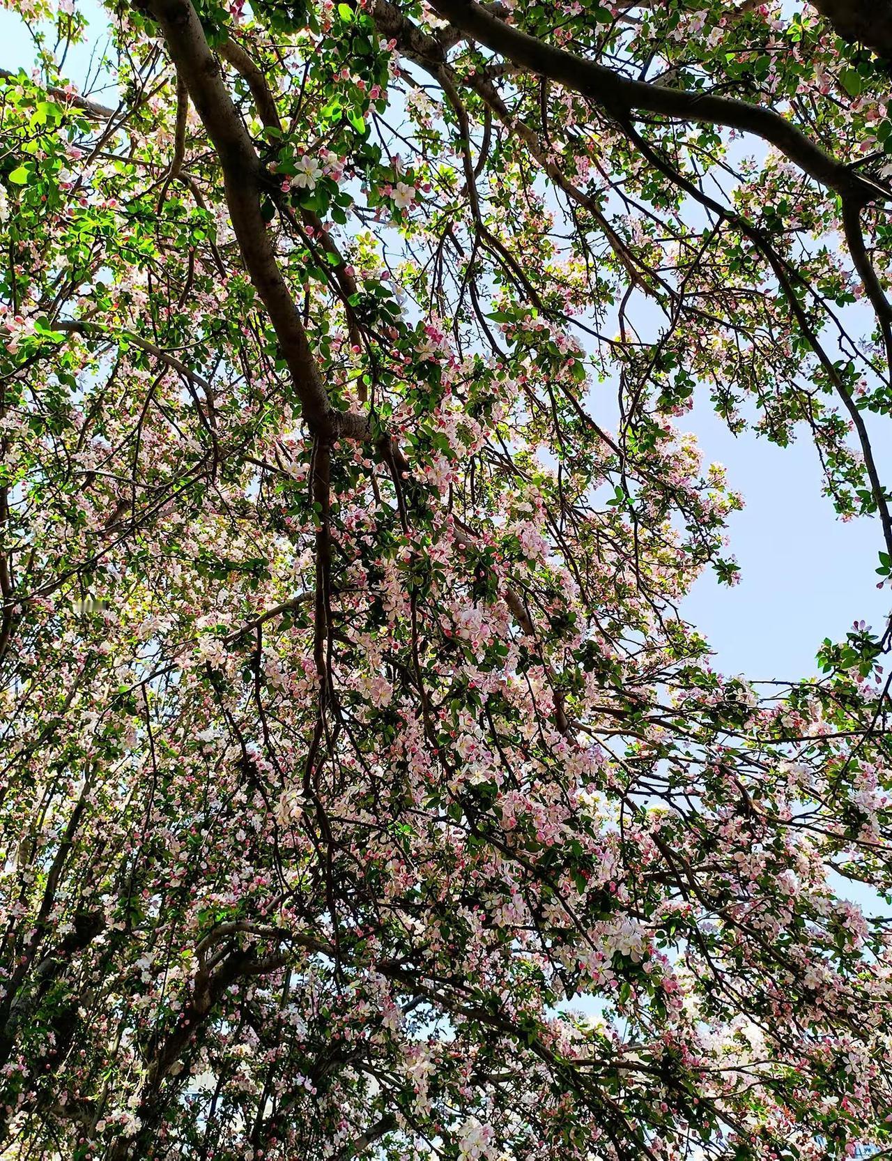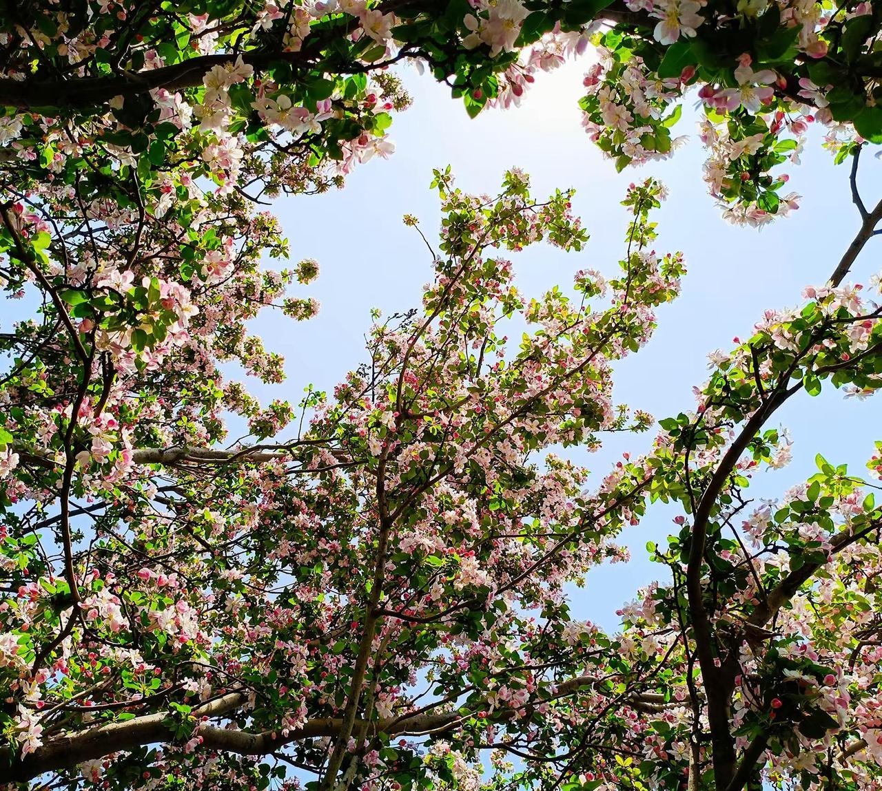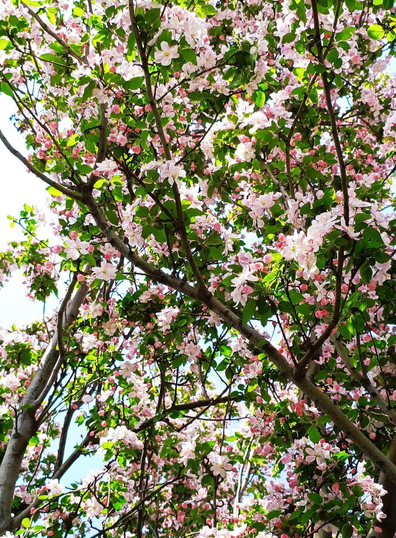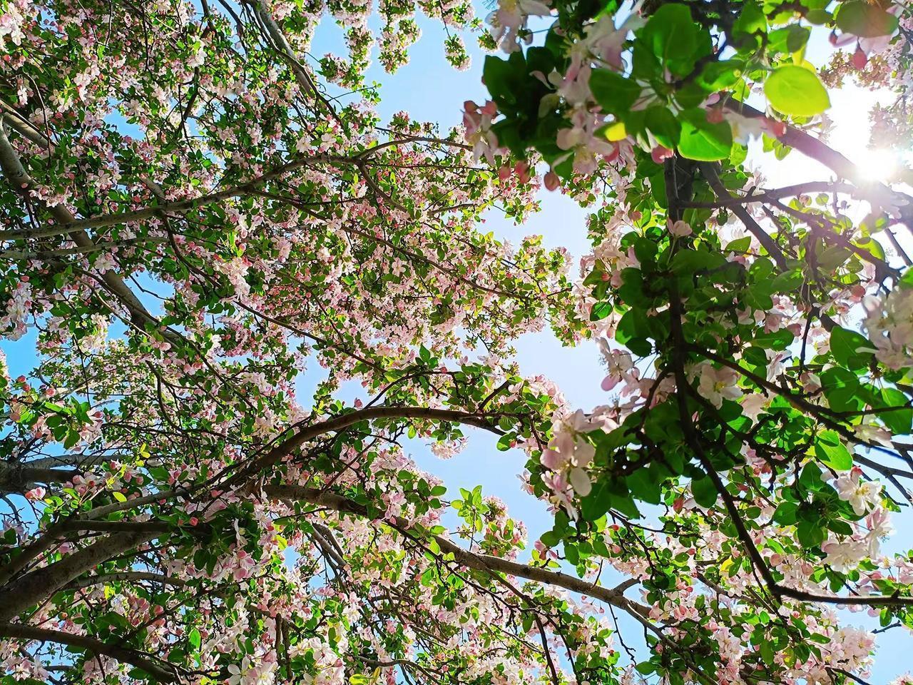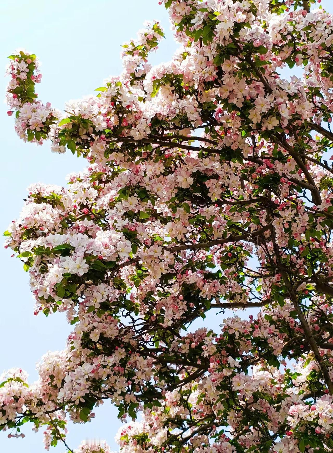 一树繁花。一树海棠花 花树蓝天 海棠花 春暖花开