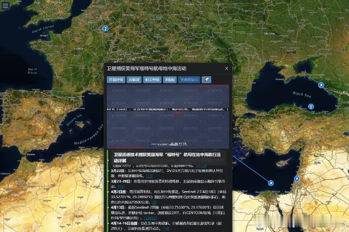 有消息称,福特号正在前往红海,16号觅熵的卫图,显示了其在苏伊士运河旁 此前福