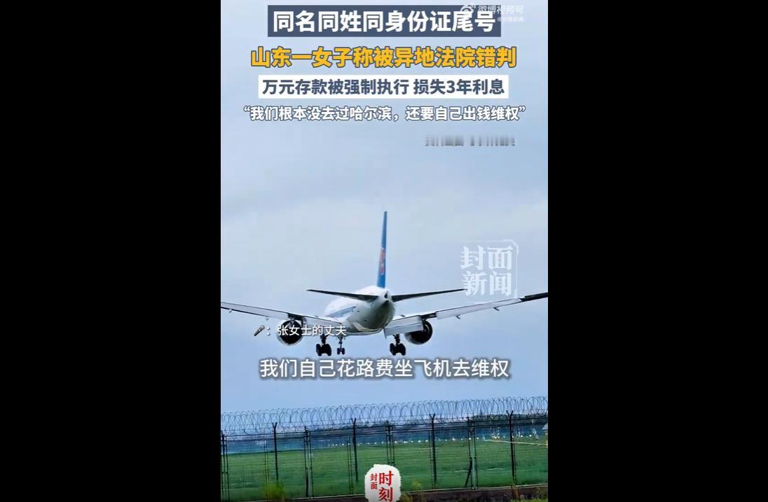 山东青岛张爽因与哈尔滨一案件被告同名同姓、身份证后四位相同,毫不知情下被错判并强制执行。