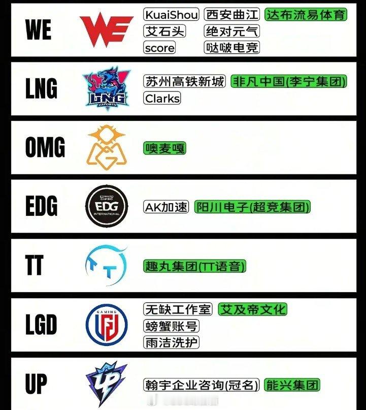 网友统计LPL各队赞助商:WE有七个赞助 仅次于BLG的十个