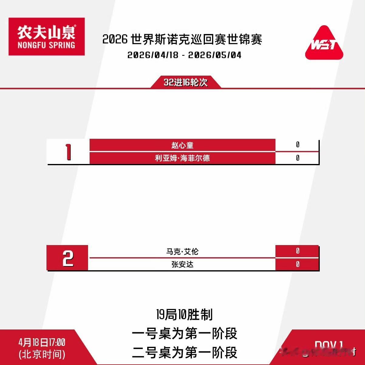 2026斯诺克世锦赛正赛首个比赛日正在进行,两名中国球手同时出战。 卫冕冠军赵心