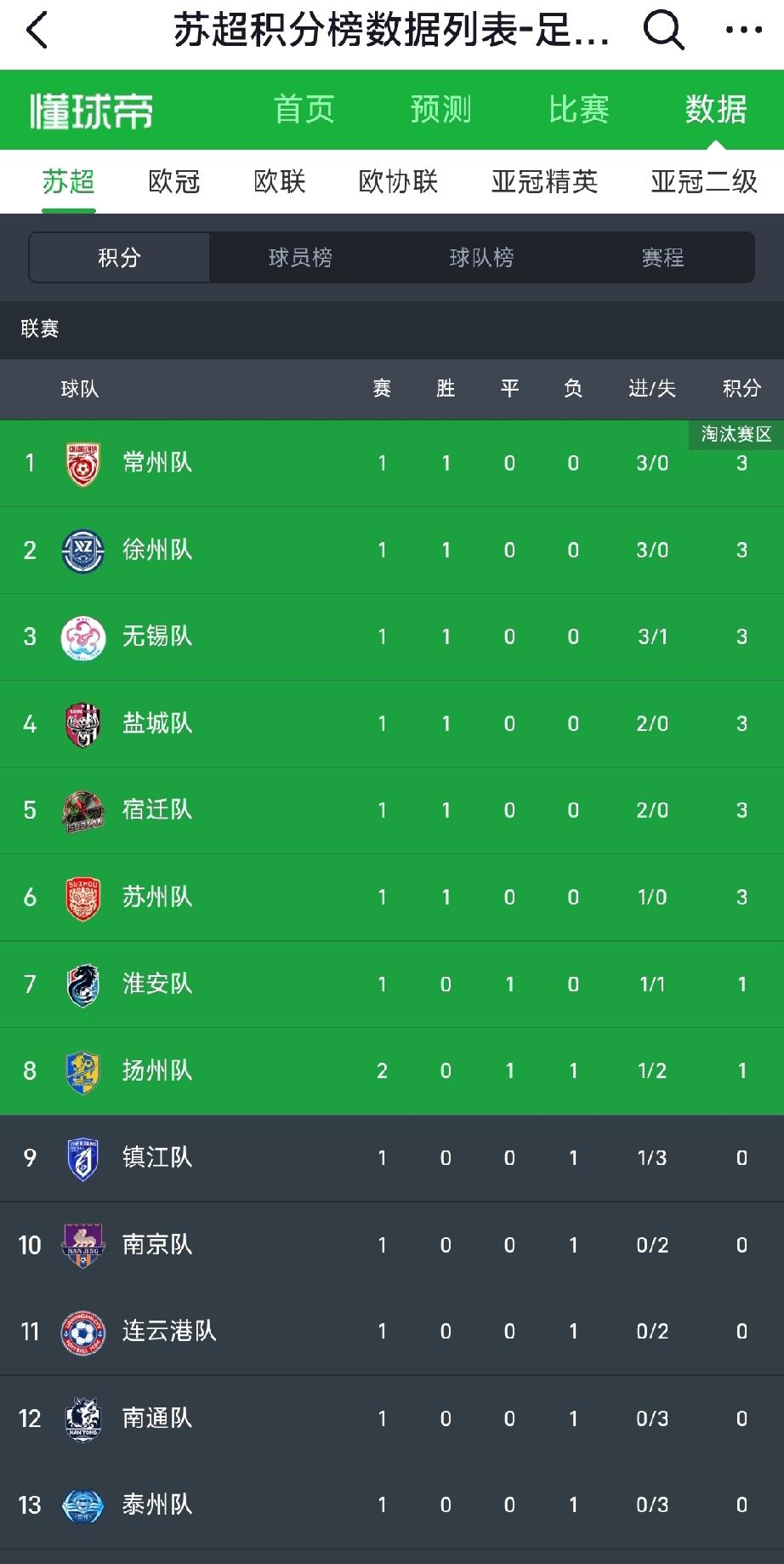 苏超最新积分榜出炉,所有队伍的比赛均已结束。万万没想到的是,排名榜首的竟是去年排名倒数第一的常州队。排名第二的是徐老大队,而去年的冠亚军如今却分别位列倒数第一和倒数第二,实在太戏剧性了。难道今年常州队要拿冠军? 哈哈。