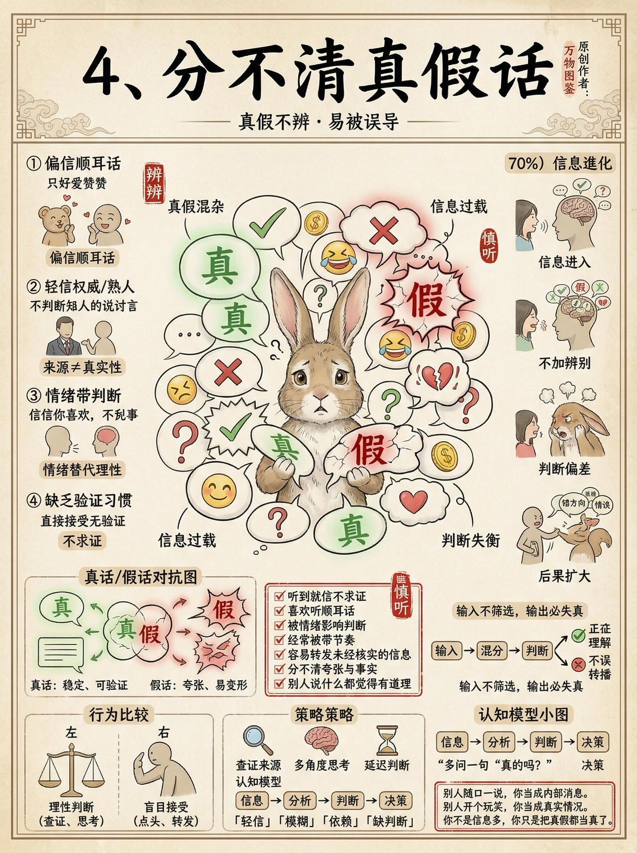 只爱听顺耳好话,不懂辨别信息真伪,很容易被人带节奏、被误导