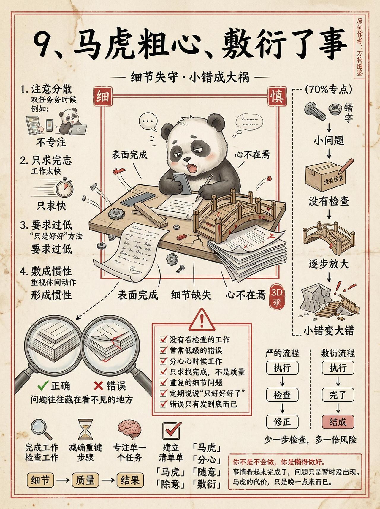 做事只求速度、不愿走心,小漏洞从不检查,最后小错直接酿成大祸