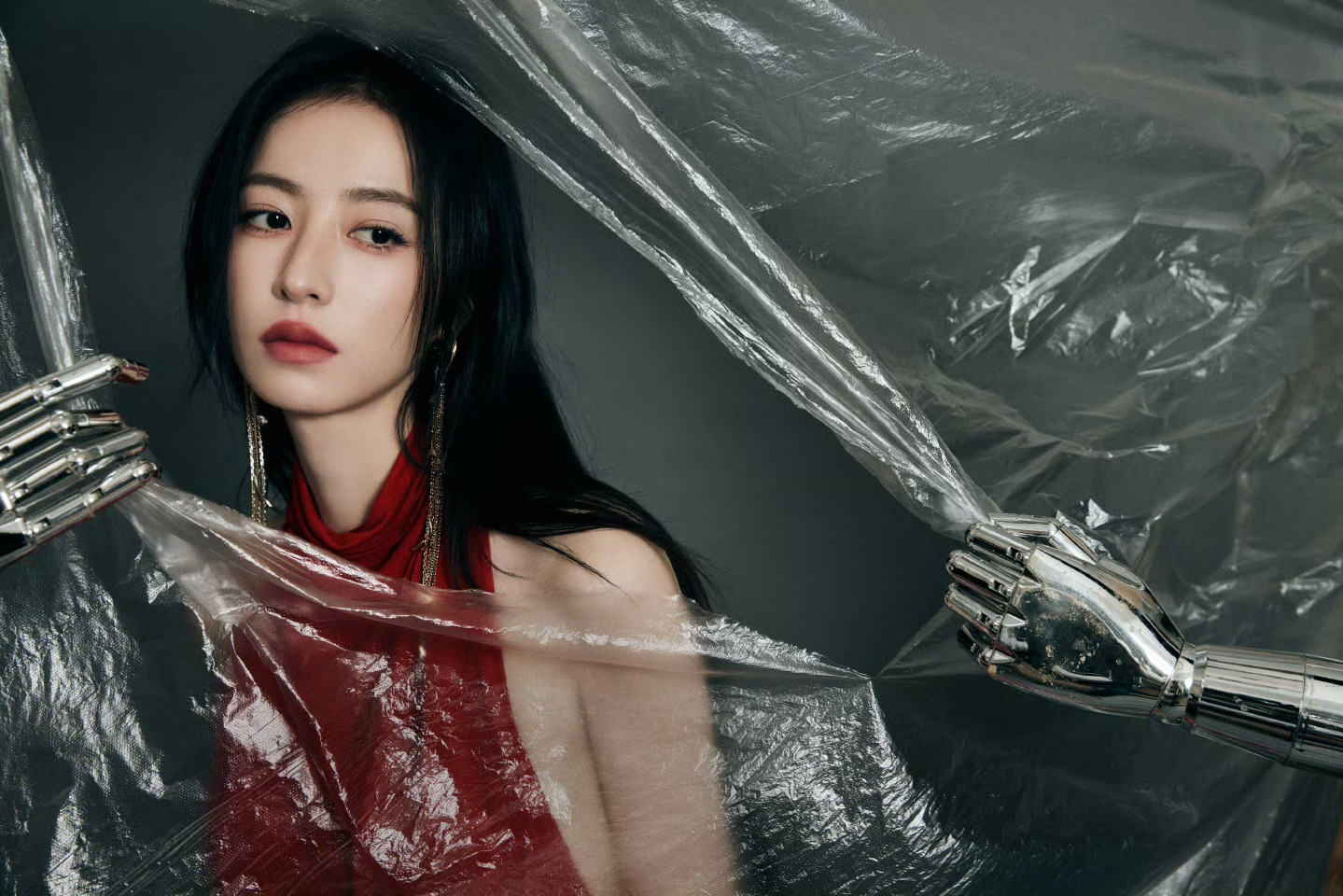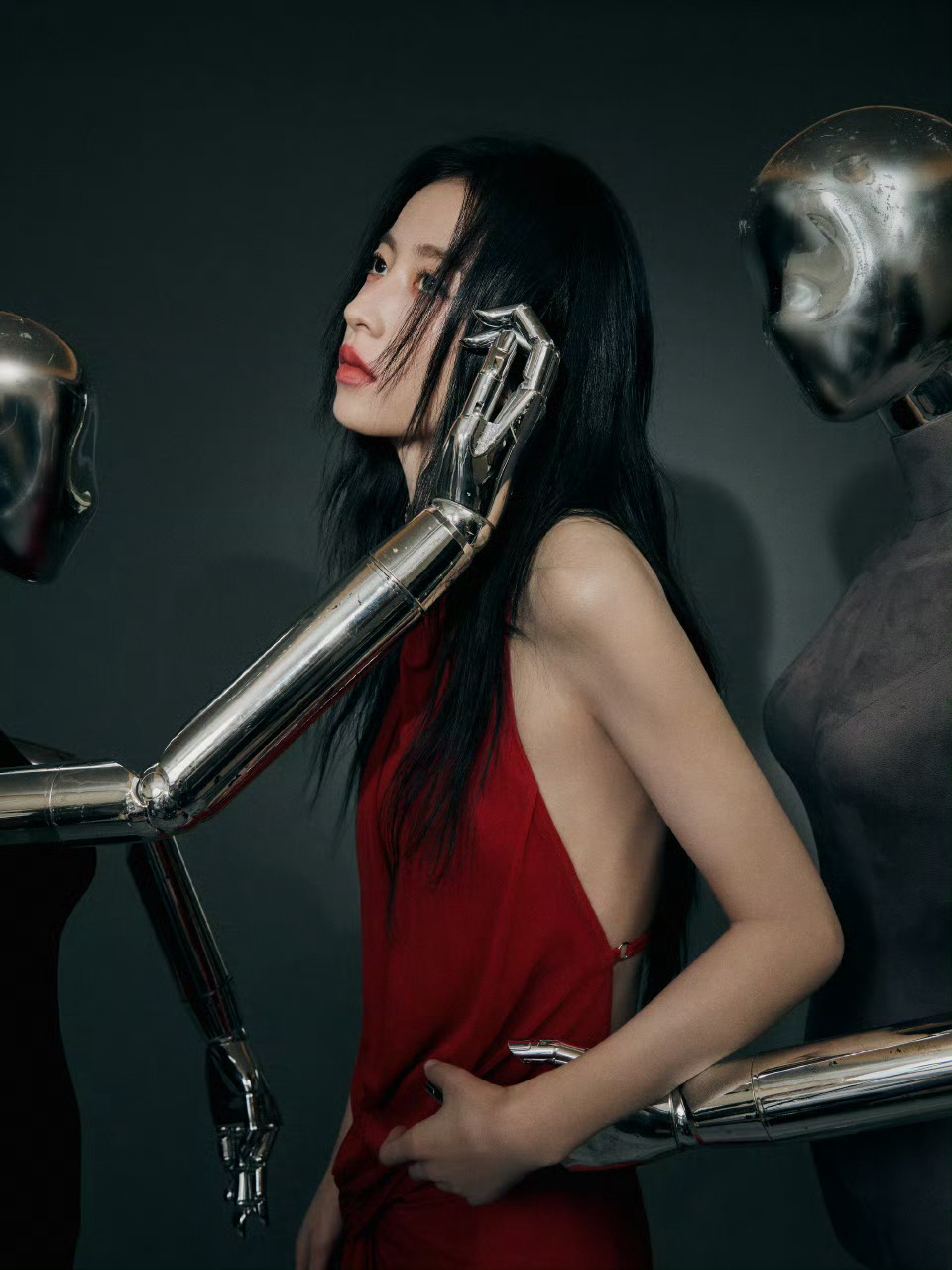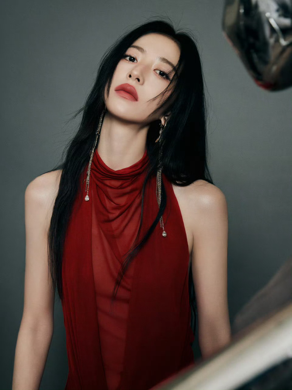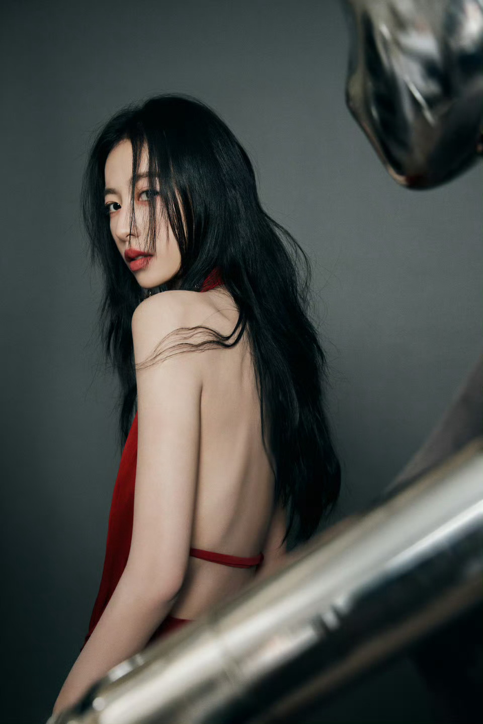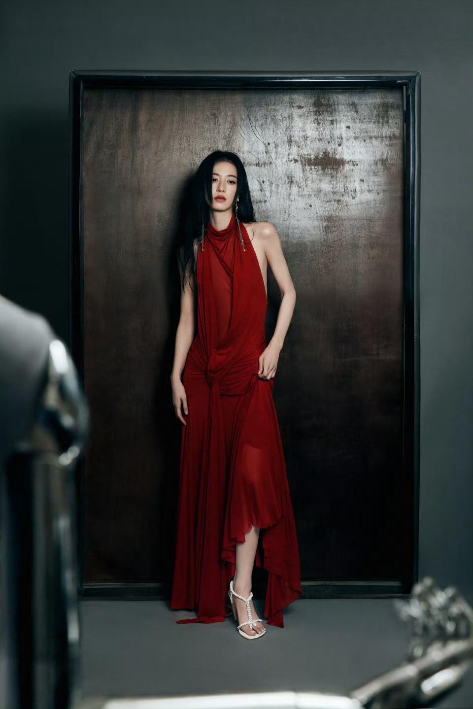 周雨彤上海品牌活动生图挂脖红裙的周姐,美艳秀背