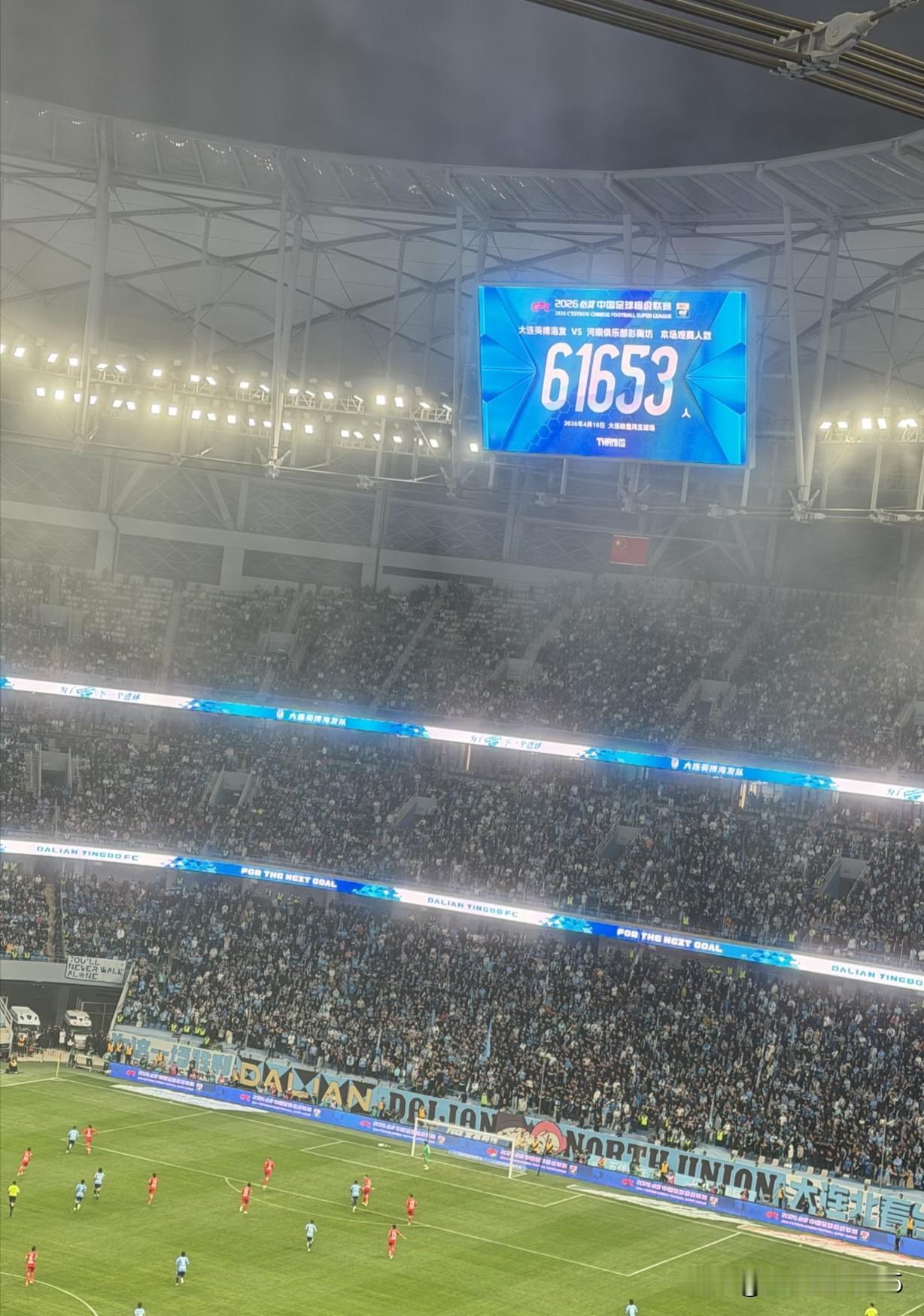 昨晚的梭鱼湾球场 大连英博VS河南彩陶 半场落后的情况下,大连球队永不言弃。
