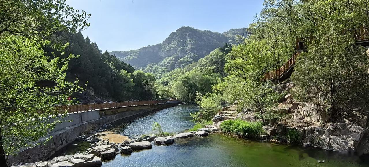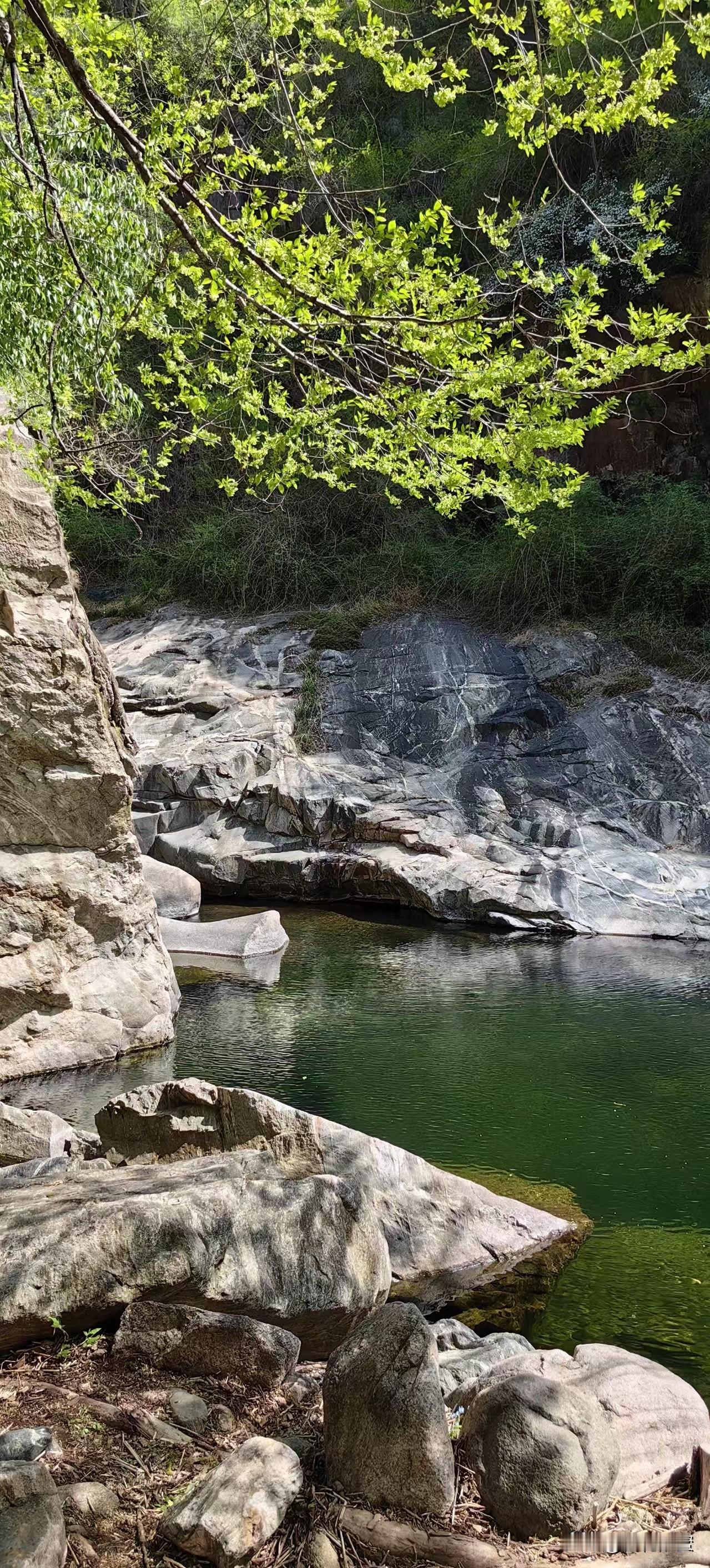 顾名思义,彩石溪看的就是彩石和溪水。今年春季雨水不算少,一路水流潺潺,陪伴左右,绿树成荫,青脆欲滴,人行其中,顿觉神清气爽。