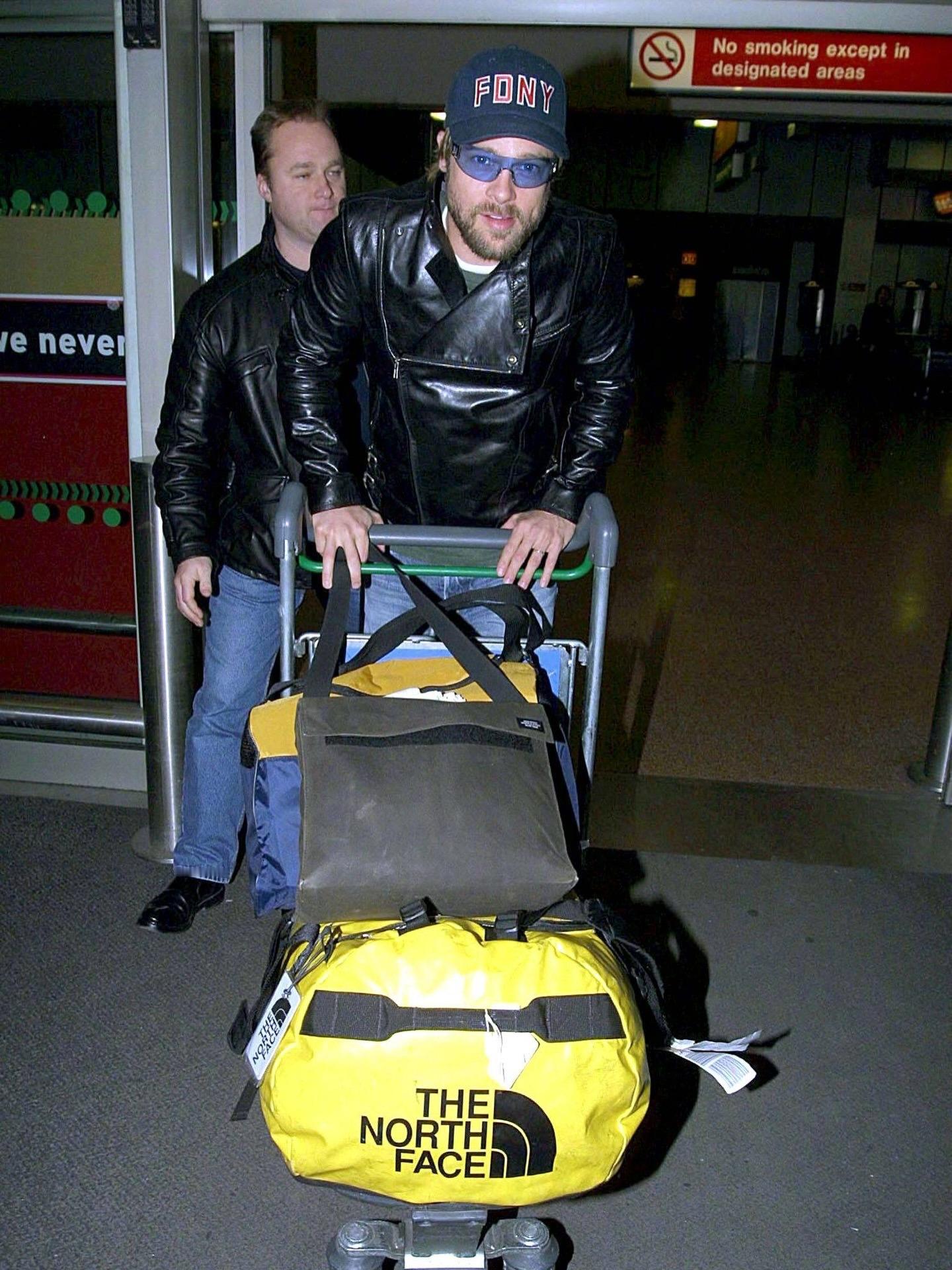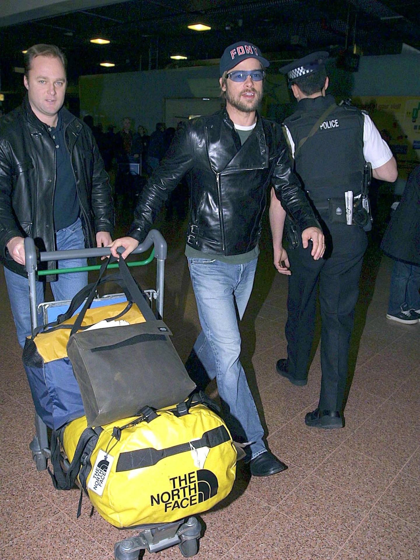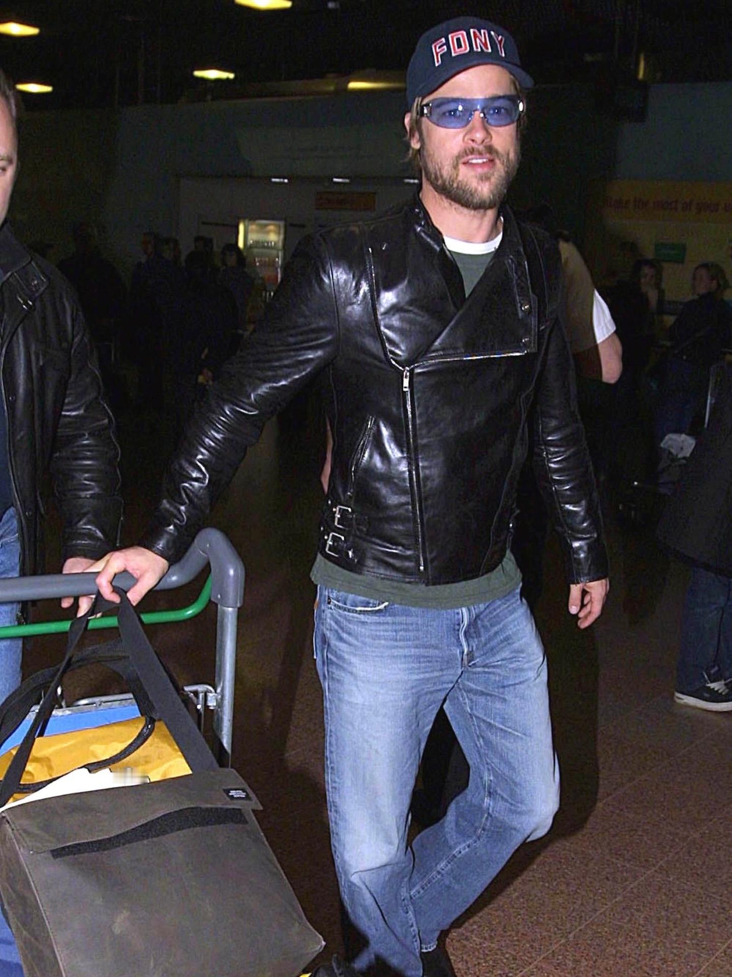 猛一眼,以为是__2002年1月28日,布拉德·皮特抵达英国伦敦的希思罗机场被拍!