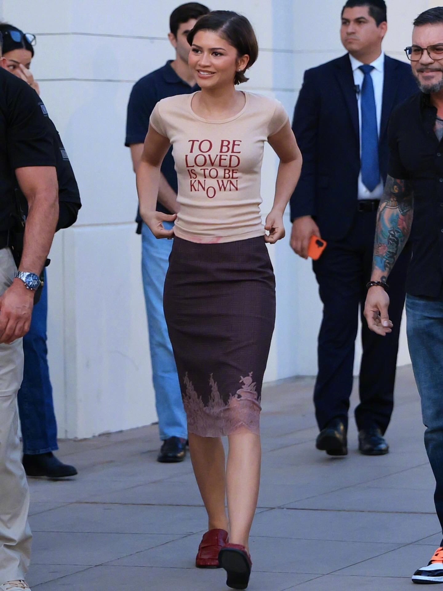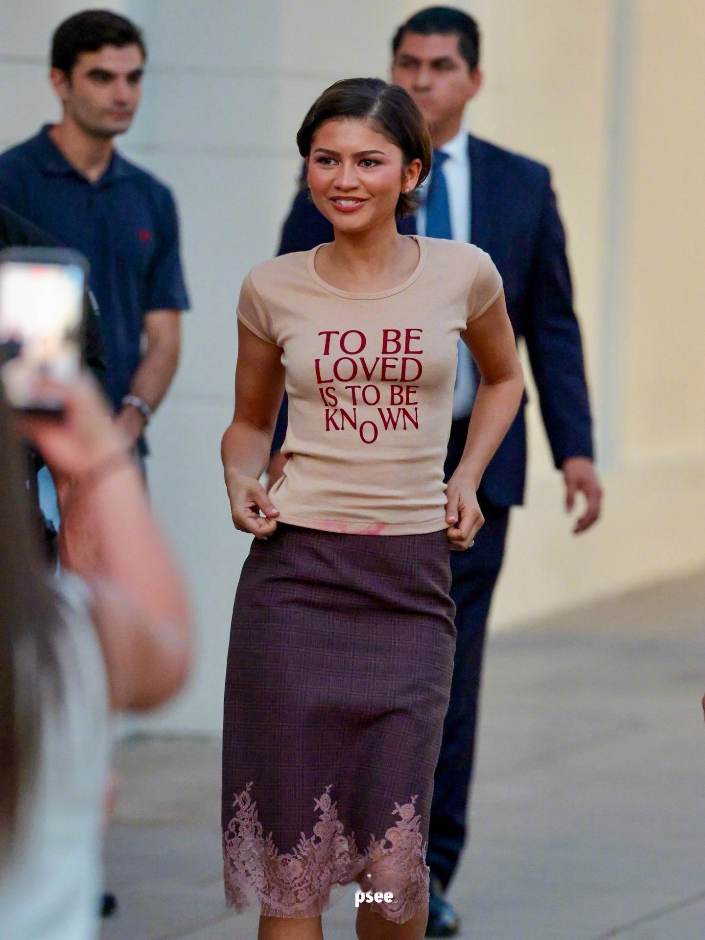 赞达亚和 Robert Pattinson 周末现身洛杉矶 The Grove 举办的电影《The Drama》特别放映活动。看了吗?这电影到底好看不好看?赞达亚身穿The Drama T恤,配搭Louis Vuitton2013秋冬系列半裙,脚穿Jil Sander乐福鞋。米拉服饰解析