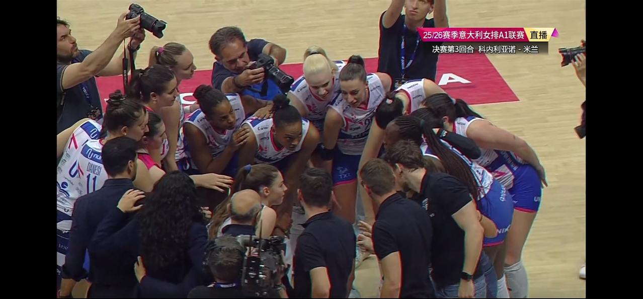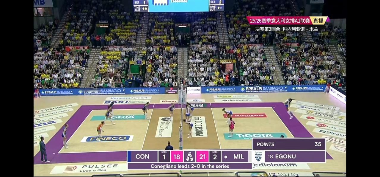 在今天凌晨结束的2025-2026赛季意甲女排联赛决赛第三回合的比赛中,朱婷效力的科内利亚诺在主场以1:3不敌米兰,但在五场三胜制中仍以2:1领先。本场比赛米兰获胜的主要原因之一是接应艾格努一改之前几场低迷的状态,表现出一个顶级接应的实力,而科内主攻线上表现一般,米兰以25:20先拿下第一局,第二局科内25:20扳回一局,第三局双方打得异常激烈,米兰以29:28先拿到局点,之后加比进攻被拦,米兰以30:28险胜,第四局米兰乘胜追击以25:20获胜,以3:1战胜科内将大比分变成1:2,也把决赛带入第四回合,第四回合的比赛将于 4 月 23 日凌晨 02:30 在米兰主场进行,球迷又可以多看一场比赛了[点亮平安灯][点亮平安灯][点亮平安灯]