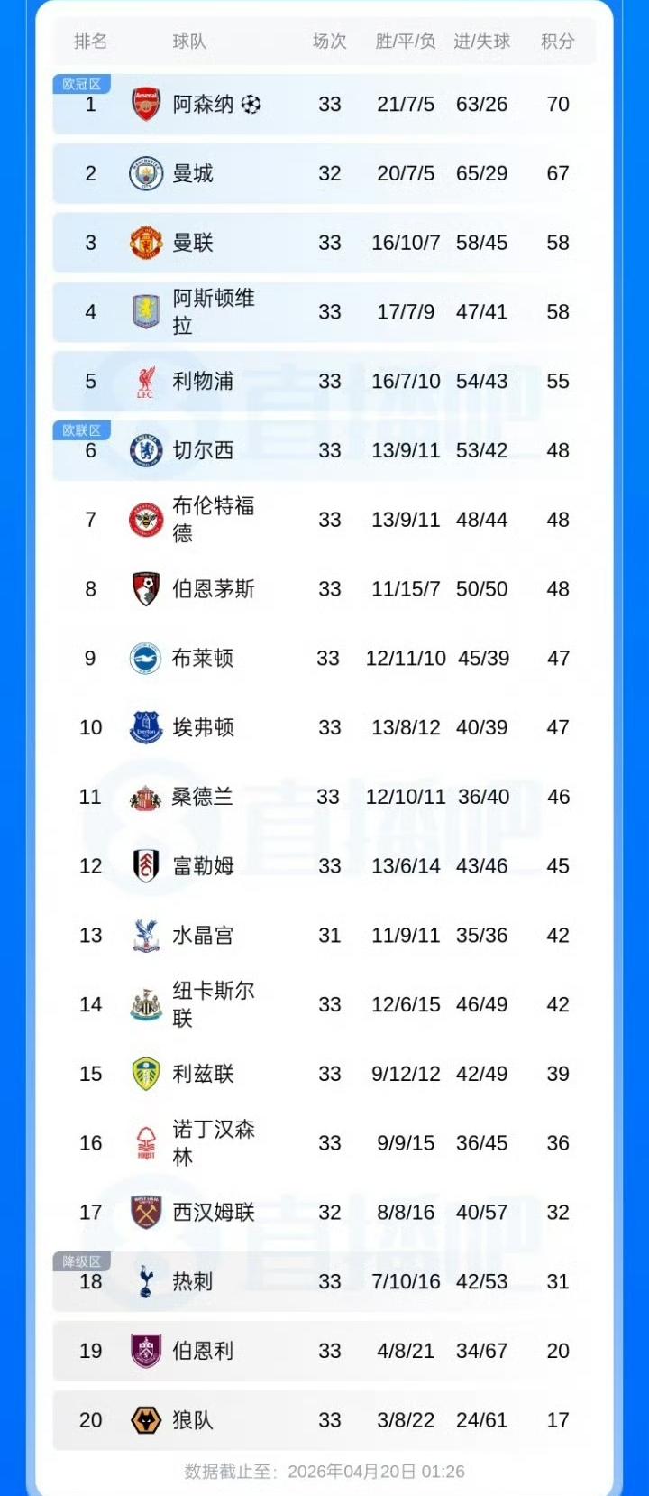 曼城少赛一场,积分仅比阿森纳少3分。枪手丧失当初积累的巨大领先优势。哈兰德制胜球搅乱争冠格局。