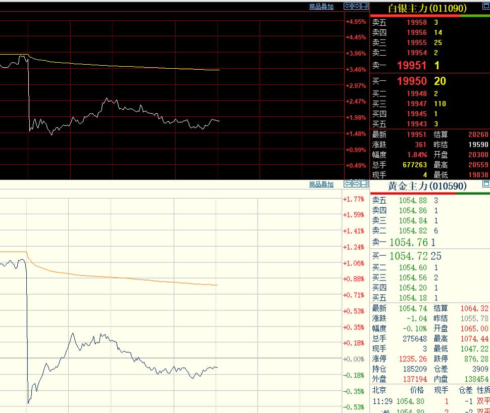 上午国内贵金属, 黄金和白银走势分化, 涨跌不一。 虽说日内恢复交易后, 双双直