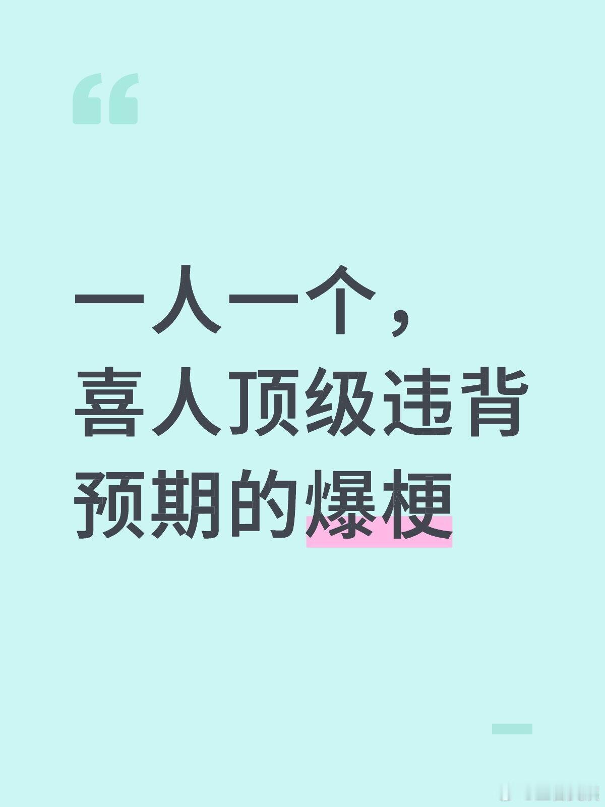 一人一个,喜人顶级违背预期的爆梗 !!!
