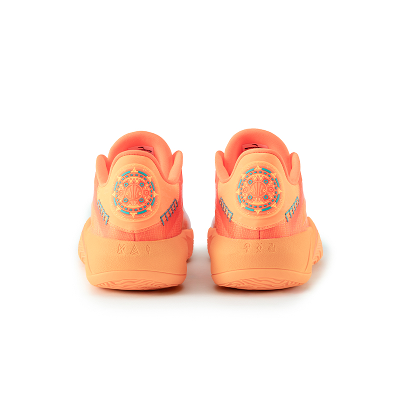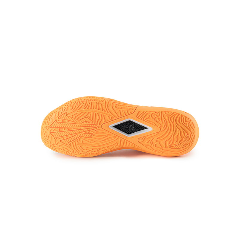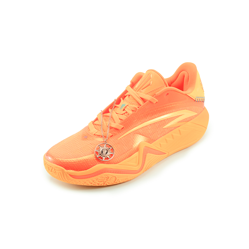 ANTA KAI3 Calcite「太阳石」| 配色以凯里·欧文对自然力量的致敬与赛场精神延续为设计核心,鞋身选用暖橙鎏金为主色调,以天然日光石的矿脉纹理为视觉线索,鞋身线条处采用日冕高光式渐变压纹装饰,鞋舌KAI标识、中底线条及随附配饰融入太阳图腾与金属质感元素。橙金配色组合贴合“日光能量与信仰延续”的设计主题。同时以“太阳石的澄明与力量”为意象赋予配色文化内涵。