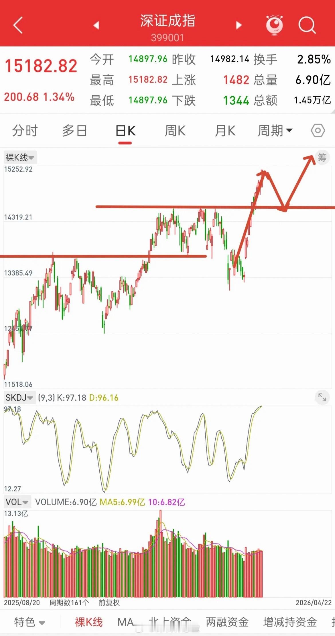创业板和深证目前全部突破前高,走了加速拉升,后面回踩前高平台附近,就是二次上车点。