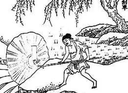 还有一种叫桔槔,适合浅水井,就是用一根长木头当杠杆,一头挂水桶,一头坠块石头,一压一抬,水桶就进水里了,快又方便,街头巷尾的百姓都爱用。