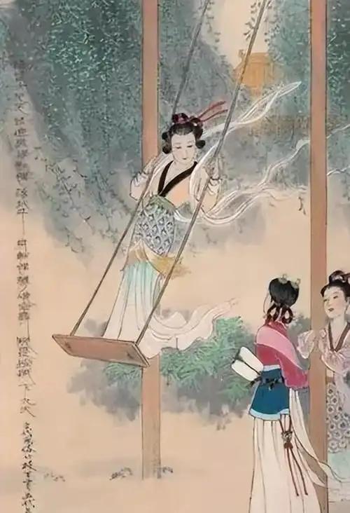 到了唐朝,秋千彻底火了,寒食节和清明节的时候,不管是皇宫还是民间,都要搭秋千架,宫里的宫女们荡起秋千,衣袂飘飘,皇帝看了都觉得像神仙,还叫它“半仙之戏”。
