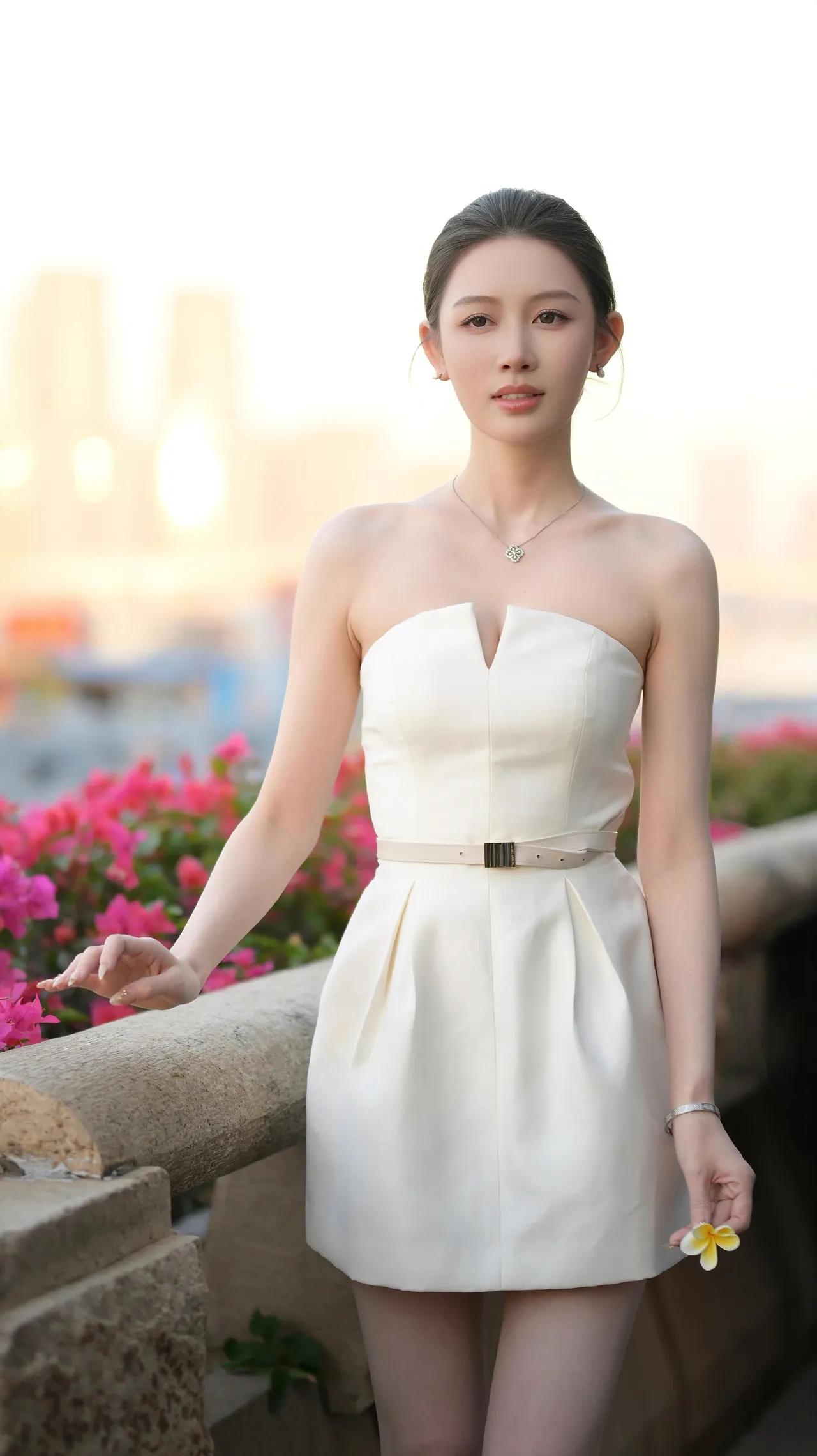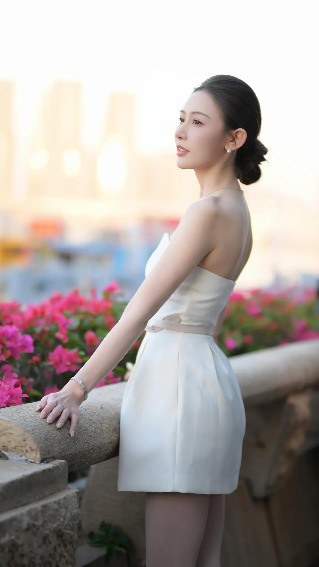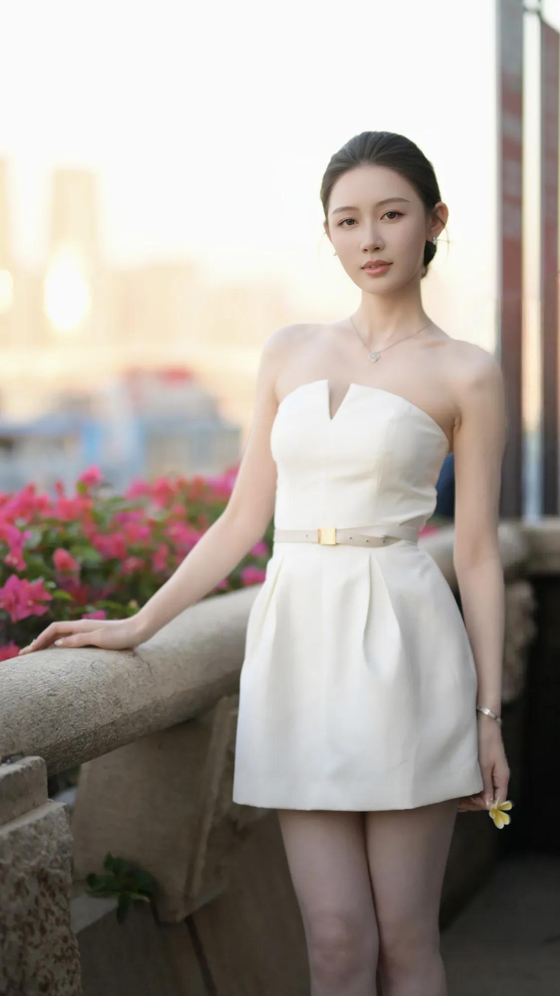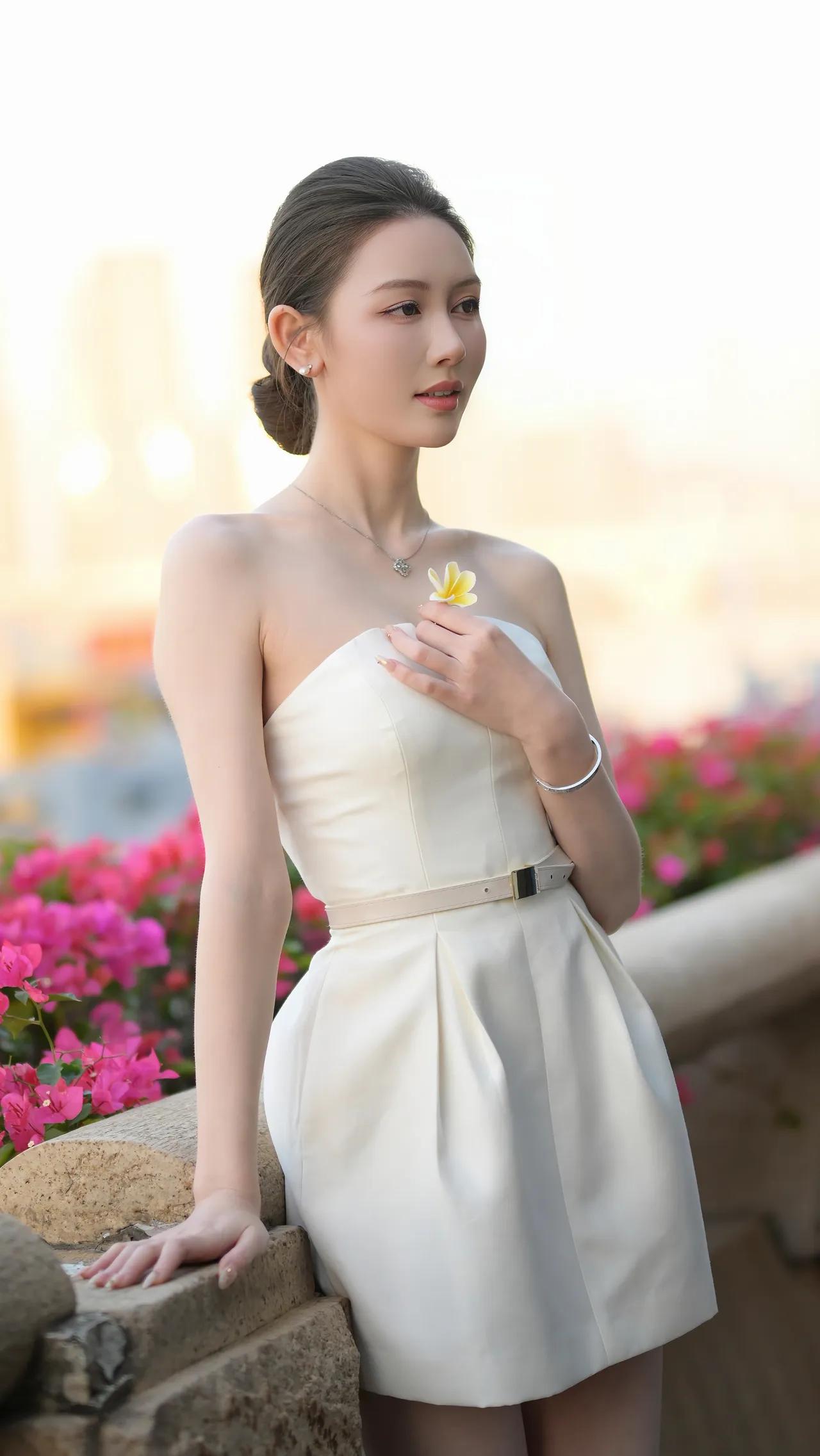 优雅白裙,都市少女,花海相伴,美不胜收阳光白裙少女 白裙少女感 温柔气质小白裙 敏敏街拍