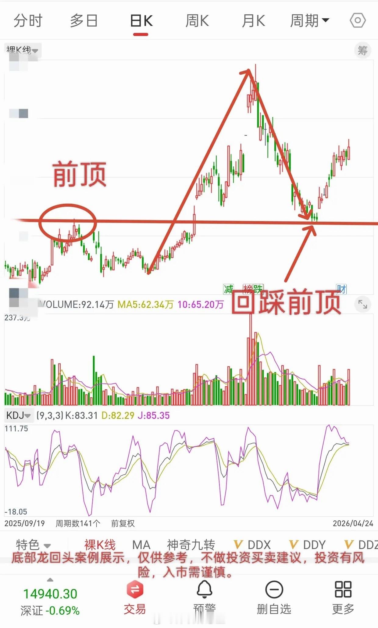 做交易不要太过于纠结,下单前,定好目标,哪里买入,止盈空间多少,防守多少。比如我们打一只底部龙回头,前顶附近上车,前顶下方带好3%防守,止盈目标设20%。