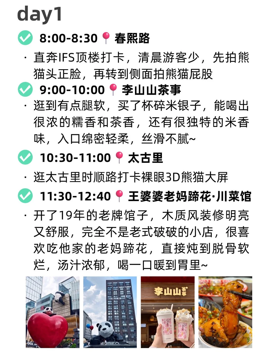DAY1: 春熙路→IFS 国金中心→太古里→大慈寺→王婆婆老妈蹄花・川菜馆→李山山茶事→望平街→一笼烧麦 (成都首店)