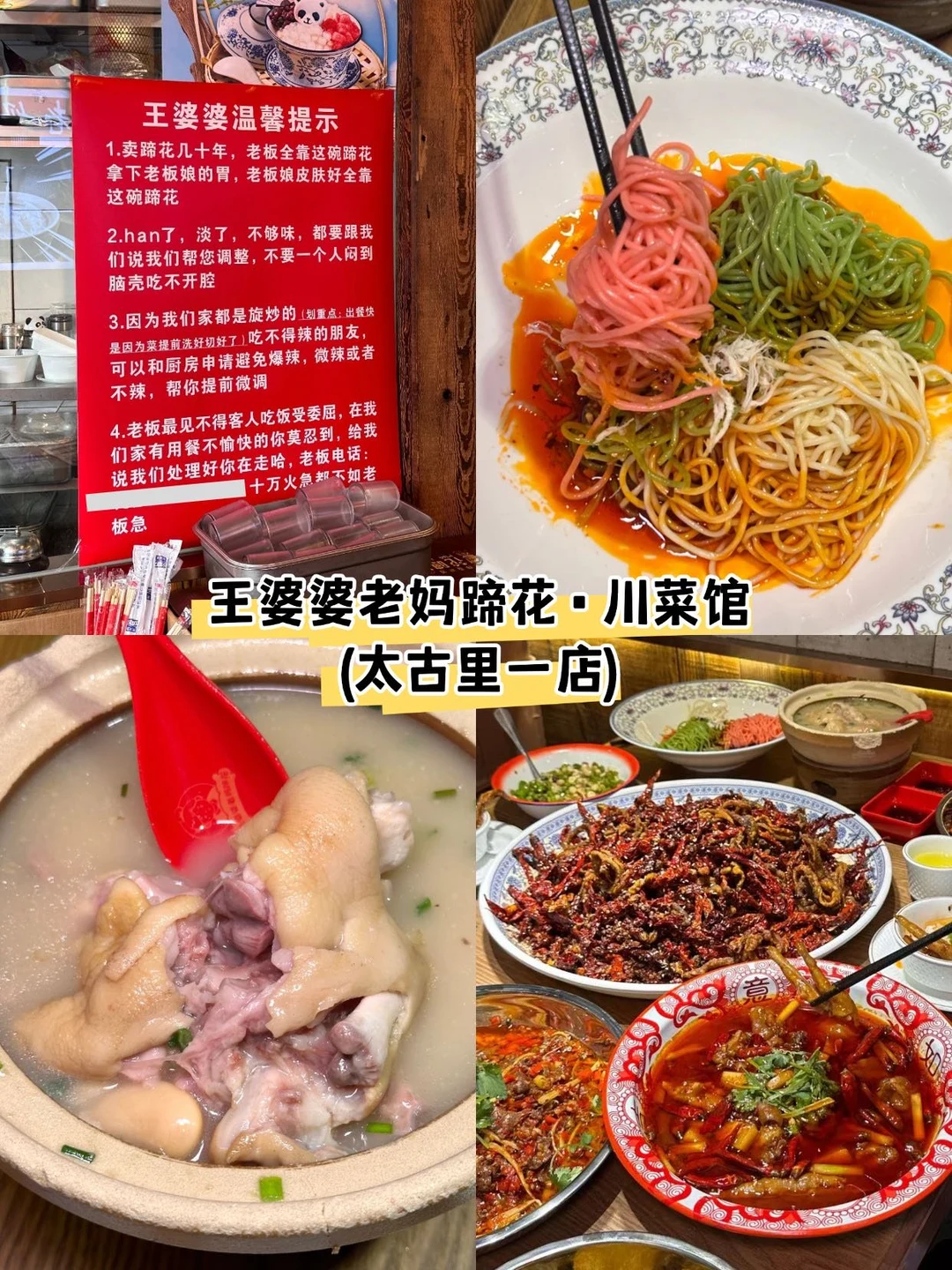 正餐:王婆婆老妈蹄花、于屿城火锅、烤匠麻辣烤鱼