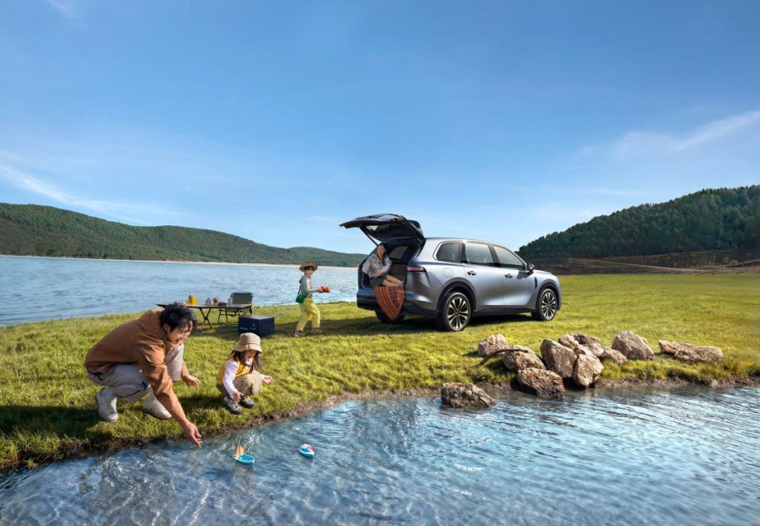 空间更是家用刚需,华境S车长5235mm、轴距3105mm,标准2+2+2大六座布局,二排独立航空座椅,带通风加热,第三排不局促,1米8的人坐进去也能舒展,后备箱能装下婴儿车、露营装备、三个行李箱,全家出行不挤不闹。