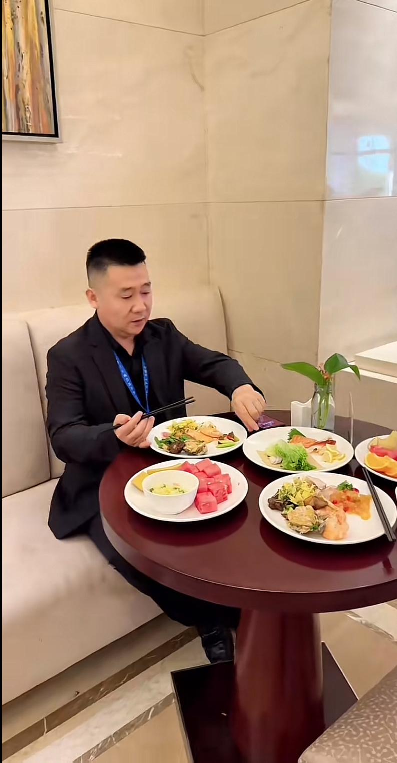 徐总自己夹菜的动作都透着克制,一点不贪多,吃多少拿多少。不像有些老板,一上镜就是山珍海味、茅台满桌,生怕别人不知道自己有钱。徐总这顿饭,连个硬菜都算不上,可就是这份“寒酸”,才是真的让人佩服。
