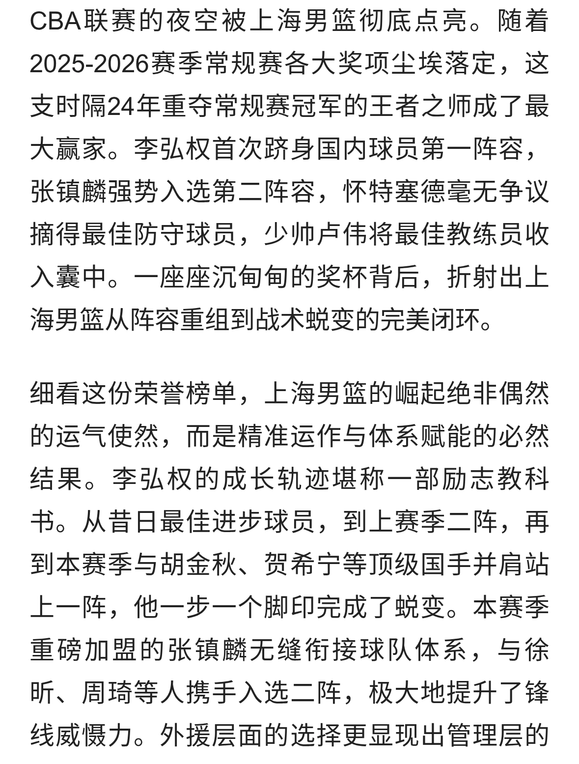 重夺冠军狂揽四奖,上海男篮的底牌藏不住了!