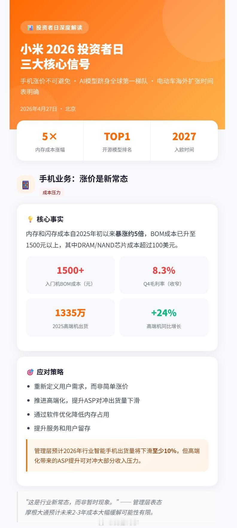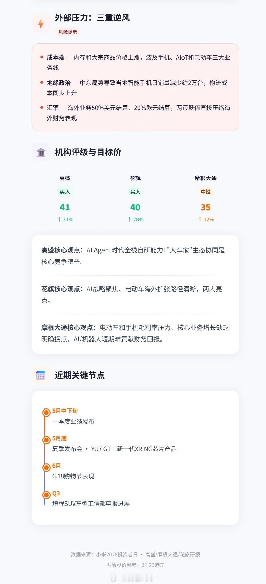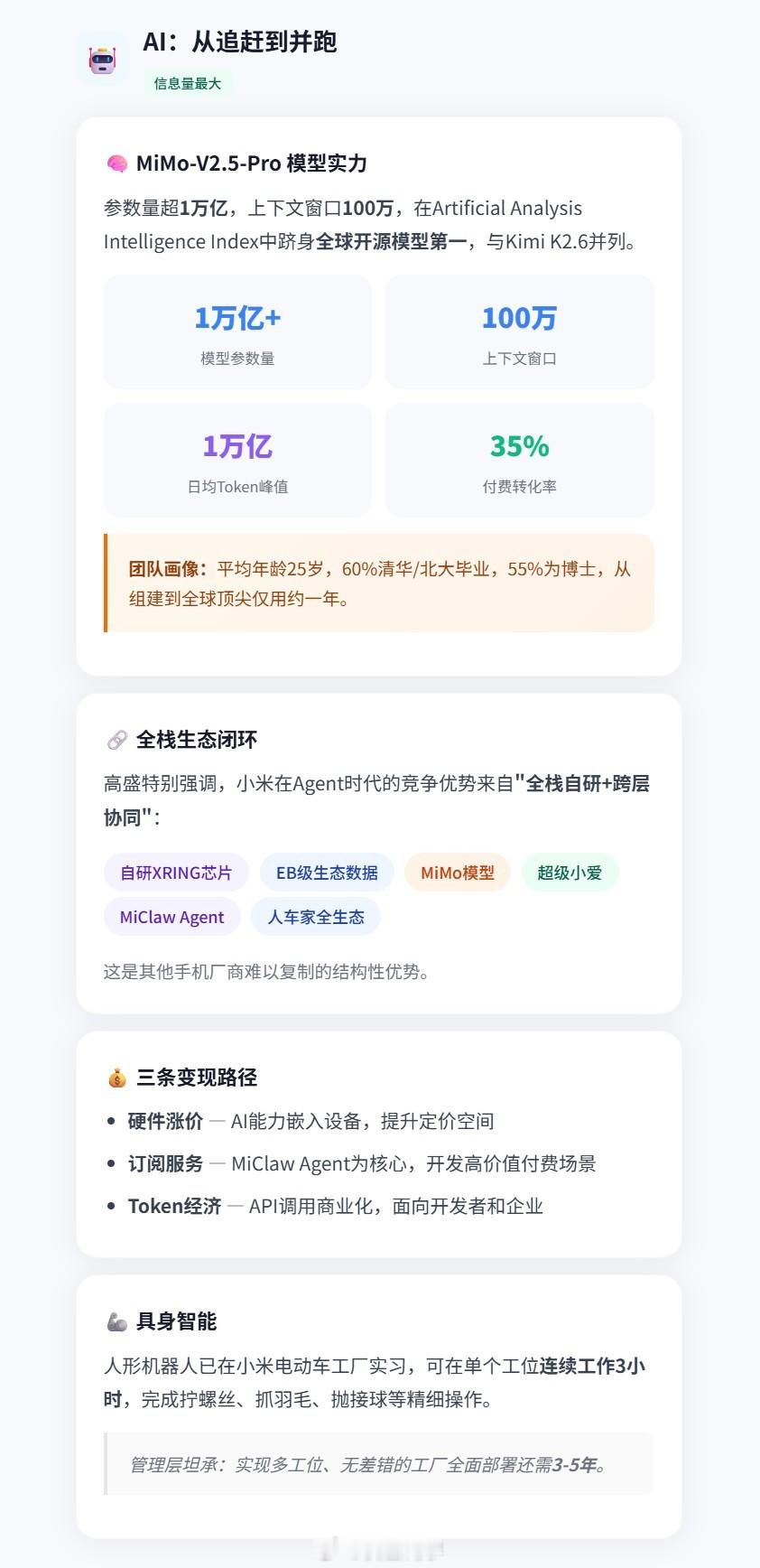 昨天投资者日,看到机构给出的研判报告,我让小米 MiMo🦐帮我总结了一下