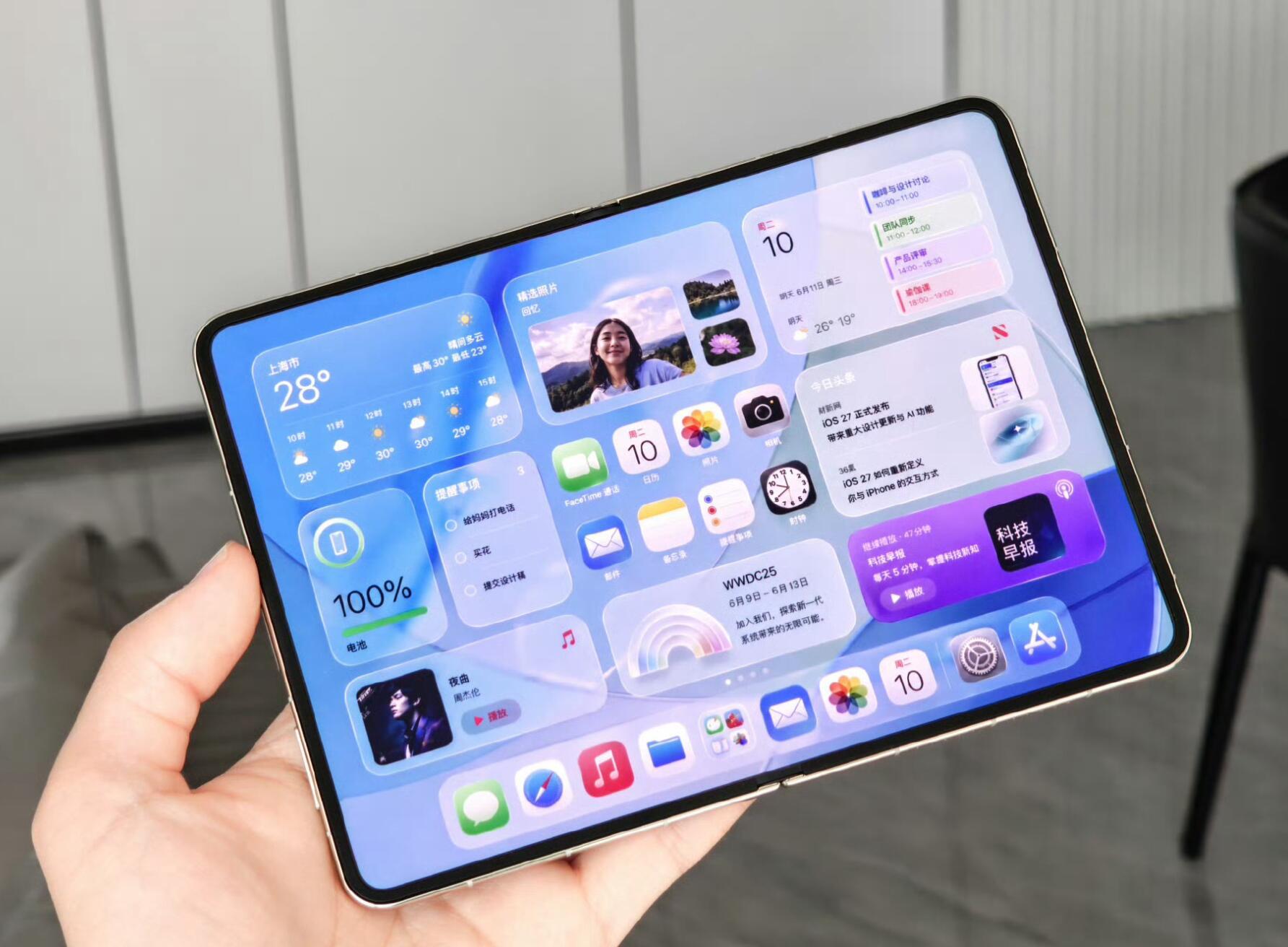 iPhoneFold疯狂秀刀法苹果首款折叠屏终于露出真容,亮点堪称炸裂:📱近