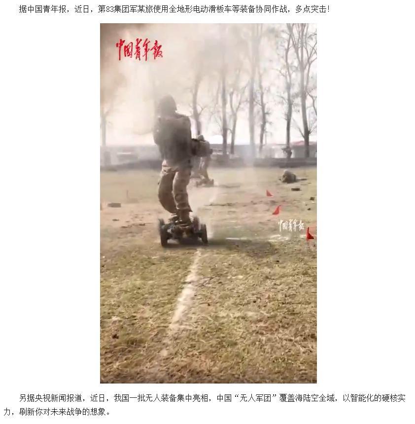 另一个容易被忽略的点:它不光是代步工具,还是智能终端,演练画面里,滑板车能和无人机、机器狼、扫雷车打通数据链。