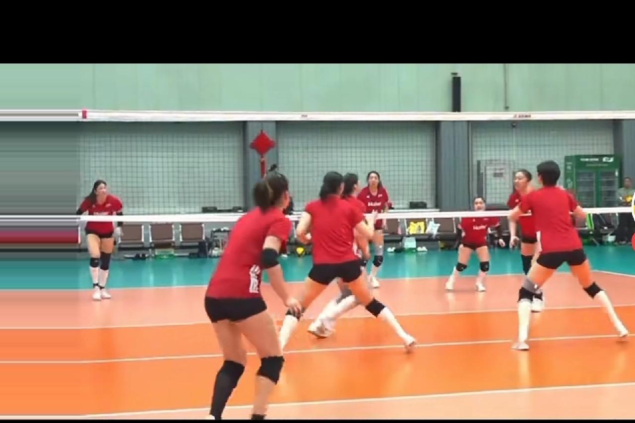 从背影看,以为李盈莹参与了对抗训练,着实吃了一惊,后来换个镜头一看,原来是季雨潇的后3攻,风驰电掣般的,另一头的庄宇珊也还了一个后3攻,真够猛的……