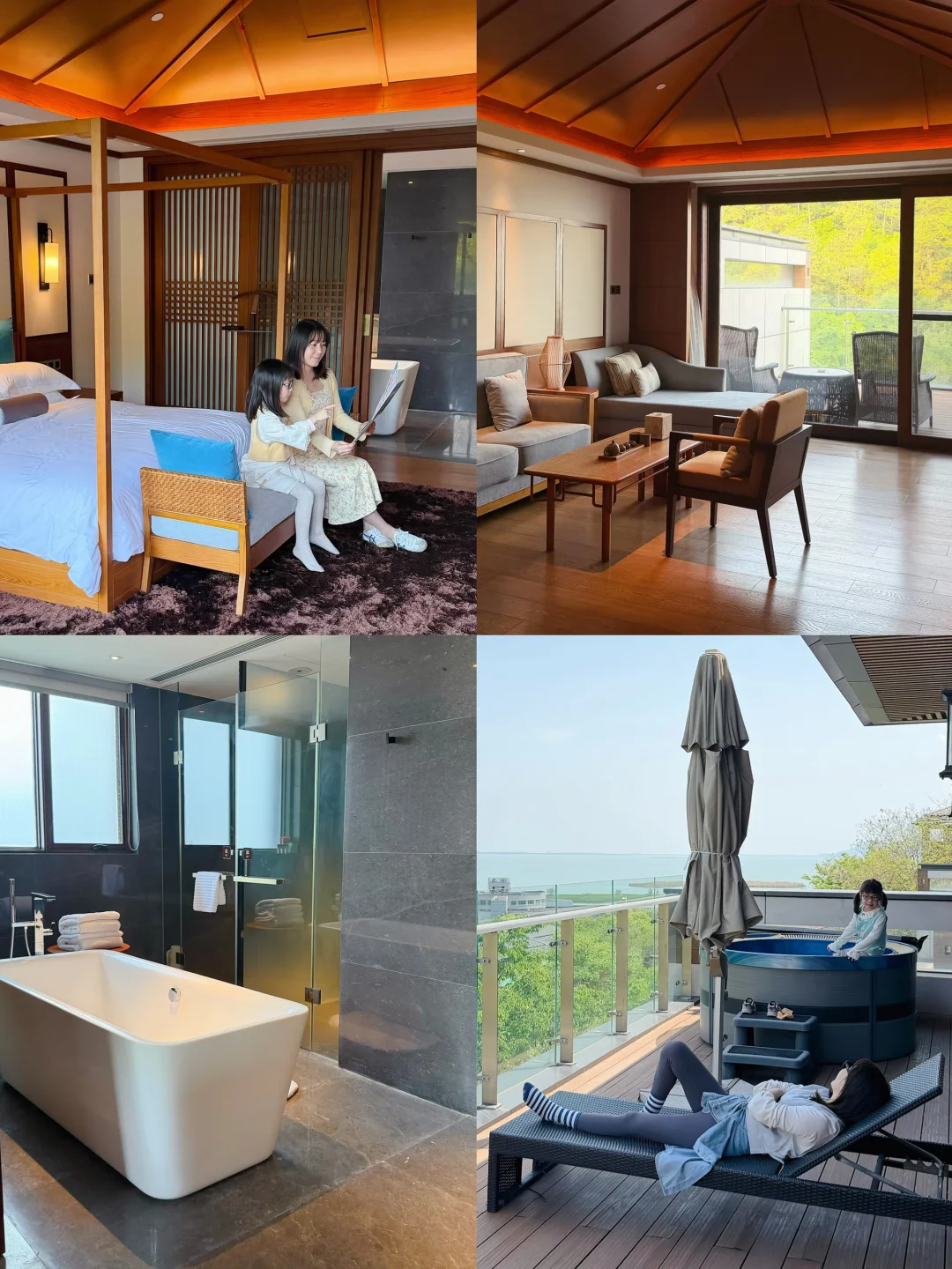 背倚渔洋山面朝太湖的国风度假酒店,过桥就是西山。我们住的套房,独栋带私♨️,推窗就是湖景。酒店建在山谷里,绿枝繁茂负离子含量💯。活动也超丰富,亲子手工、室内外双泳池、骑行、追落日等,很适合staycation