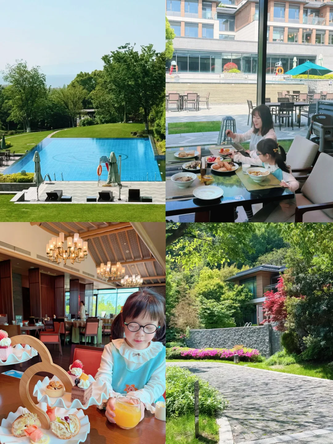 第二天睡到自然醒,从酒店专属步道进入渔洋山,20分钟登顶,沿途竹林有好多鲜嫩小野笋,妮妮边走边拔,感受春日野趣,据说下月还会有树莓。🏨送了渔洋阁门票,登顶俯瞰太湖美景视野更佳(自费性价比一般),下山选择了坐缆车,全程约2h。回到酒店还泡了个汤,上午徒步的疲倦感瞬间消失。泡完有点犯懒,在酒店喝了个下午茶,没想到意外好吃,咸甜搭配恰到好处,烟熏三文鱼咸香醇厚,各种口味的小蛋糕,完全不会腻。吃饱喝足慢悠悠地肥家咯~