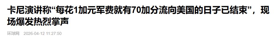 当地时间4月11日,卡尼在公开演讲中向全球明确宣告,过去加拿大每花费1加元的军费,就有70加分直接流向美国,这样的日子已经彻底成为历史。