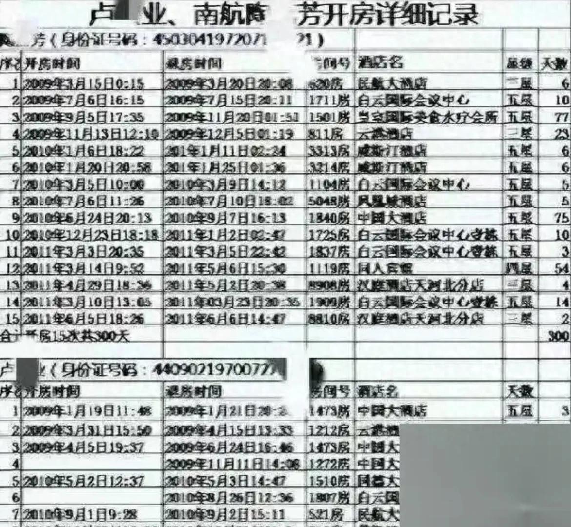 这不是什么段子,这是南航前财务部总经理卢宏业和临时工陶荔芳的真实行程单。