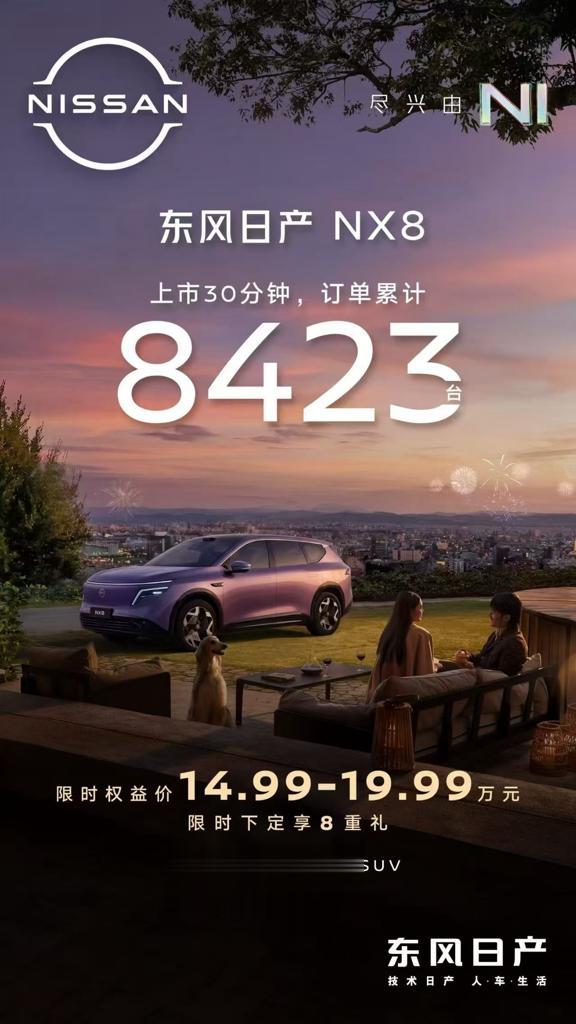放眼20万级别的SUV市场,理想空间足够但价格偏高,小鹏空间紧凑,问界入门版的缺少高阶智驾,而全新上市的东风日产NX8,将大品牌、大空间、大智慧一步拉满,限时权益价14.99-19.99万元,大量舒适配置标配,真正做到标配即满配。再加上三电终身质保、置换补贴等多重家庭友好权益,直接刷新了20万级家用SUV的价值标准,所以上市仅半个小时,NX8订单就已经来到了8423辆,上市即爆款,这个价格,很难不心动。